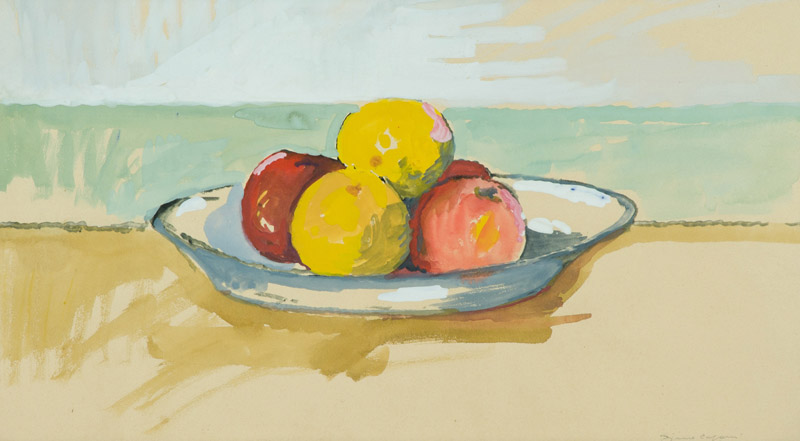 Dino Caponi Piatto di frutta, 1956 Tempera su carta, cm. 28x48 Firma e data in basso a destra.