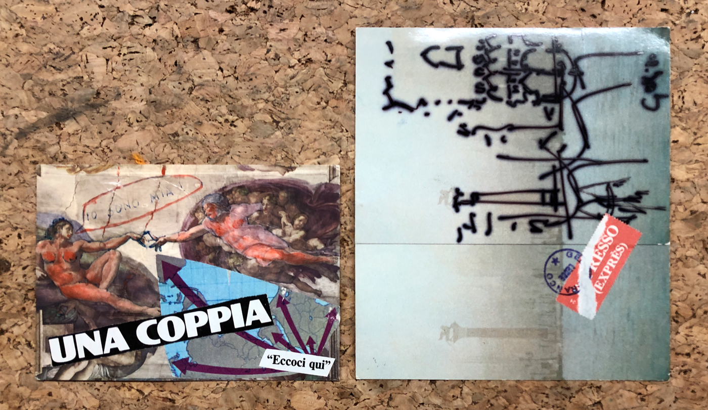 Opere di mail art indirizzata a Gino Gini, curatore della collettiva di 'Mail Art' tenutasi presso Galleria Mastrogiacomo - Images 70, Padova, dal 27/09/1980 al 24/10/1980