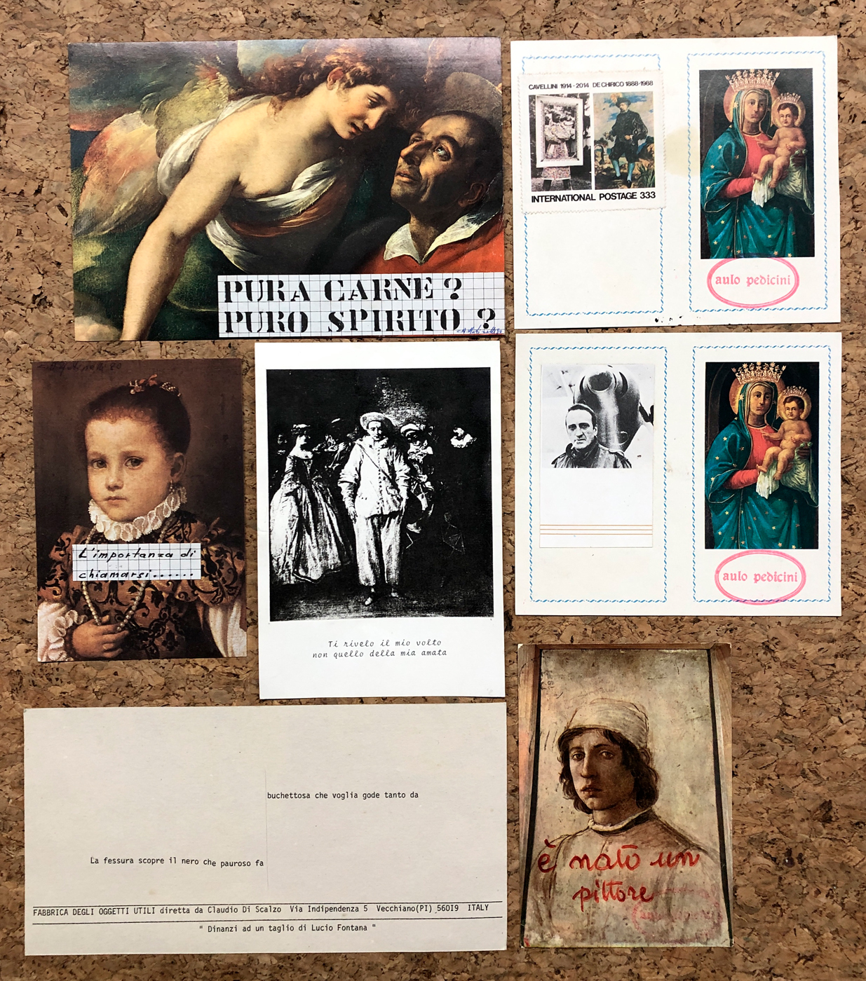 Opere di mail art indirizzata a Gino Gini, curatore della collettiva di 'Mail Art' tenutasi presso Galleria Mastrogiacomo - Images 70, Padova, dal 27/09/1980 al 24/10/1980