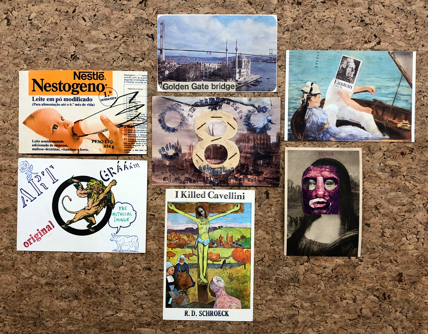 Opere di mail art indirizzata a Gino Gini, curatore della collettiva di 'Mail Art' tenutasi presso Galleria Mastrogiacomo - Images 70, Padova, dal 27/09/1980 al 24/10/1980