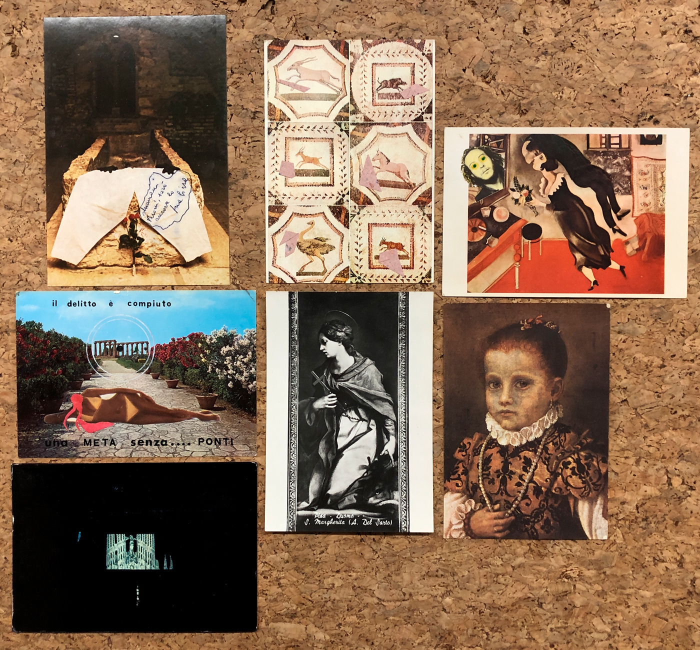 Opere di mail art indirizzata a Gino Gini, curatore della collettiva di 'Mail Art' tenutasi presso Galleria Mastrogiacomo - Images 70, Padova, dal 27/09/1980 al 24/10/1980
