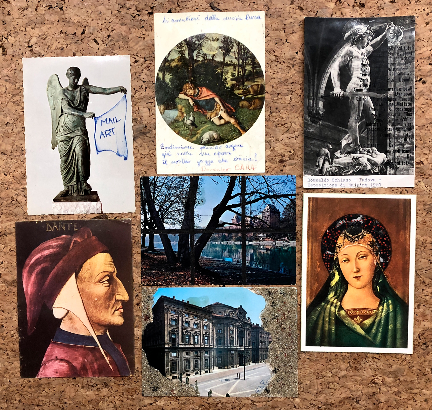 Opere di mail art indirizzata a Gino Gini, curatore della collettiva di 'Mail Art' tenutasi presso Galleria Mastrogiacomo - Images 70, Padova, dal 27/09/1980 al 24/10/1980