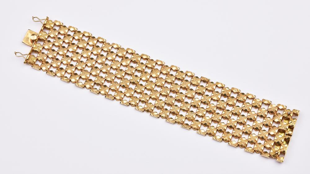 Lotto 46 | BRACCIALE IN ORO GIALLO 18 K con lavorazione a maglie esagonali incrociate e...