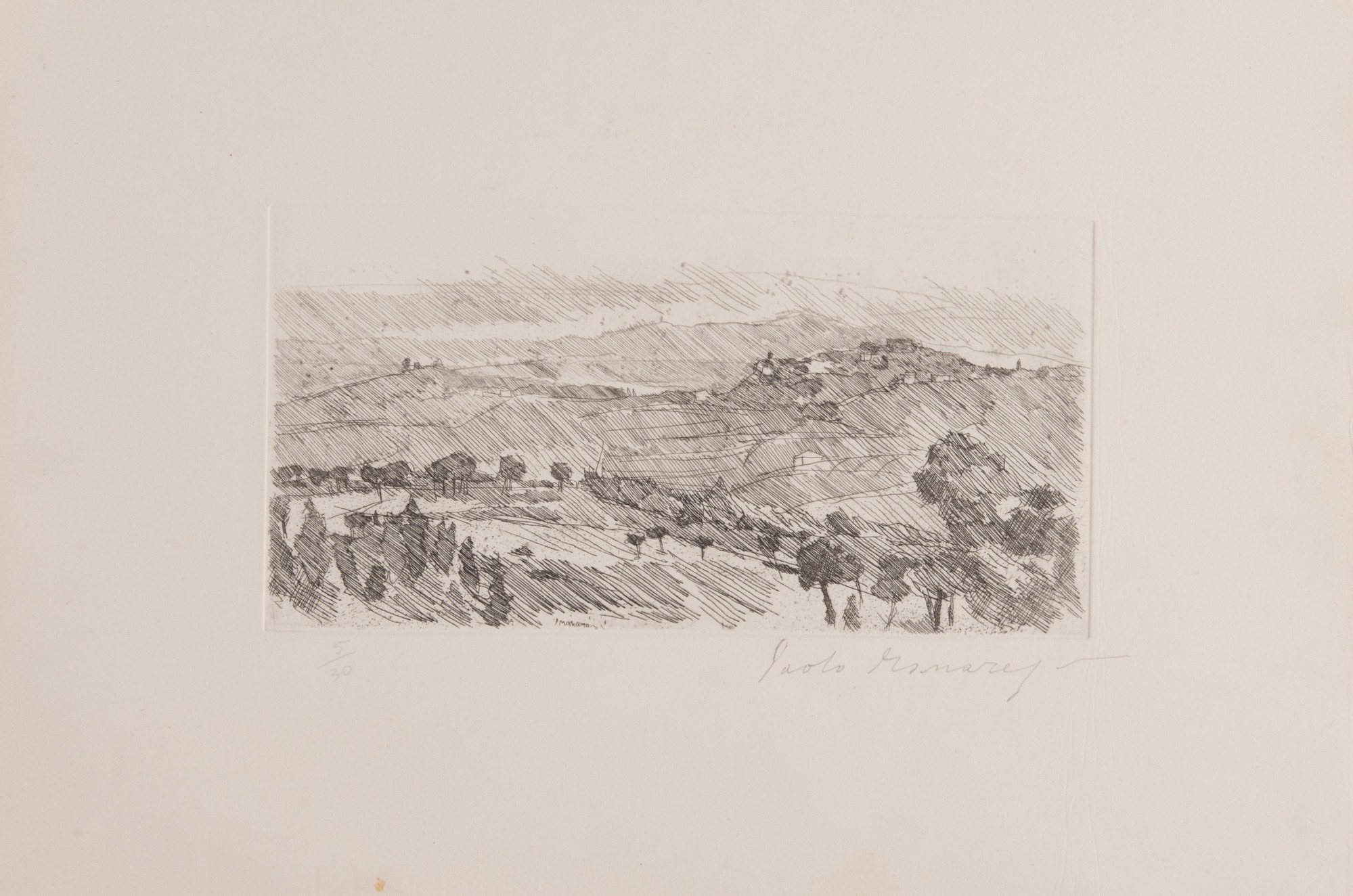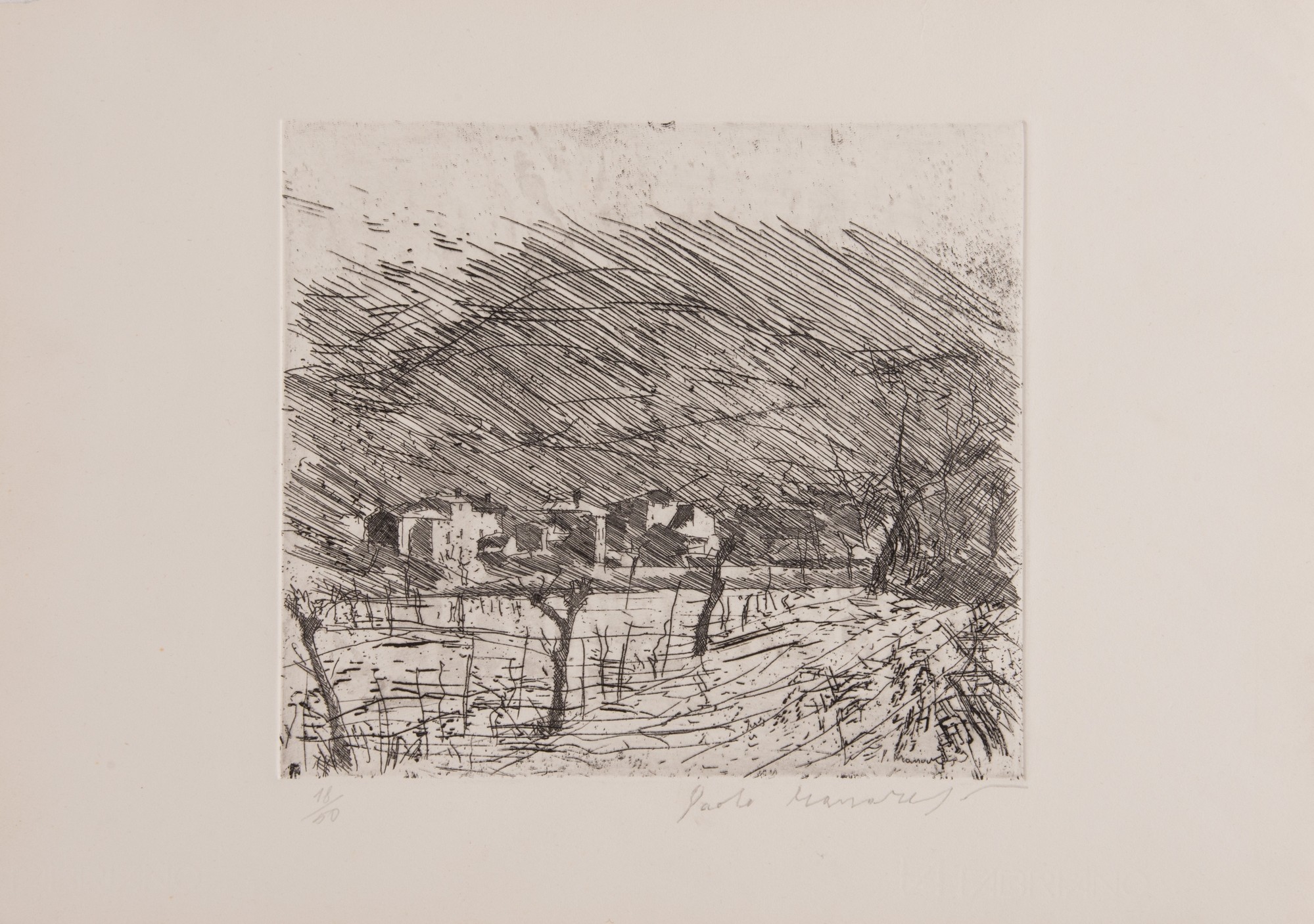 PAOLO MANARESI (Bologna 1902 - 1984). Coppia di incisioni su carta: “Paesaggio”. Incisione su carta. Cm 35x49,5. Opera firmata in basso a destra “Paolo Manaresi”, numeri di tiratura in basso a sinistra 18/50; “Paesaggio”. Incisione su carta. Cm 35x49,5. Opera firmata in basso a destra “Paolo Manaresi”, numeri di tiratura in basso a sinistra 5/30