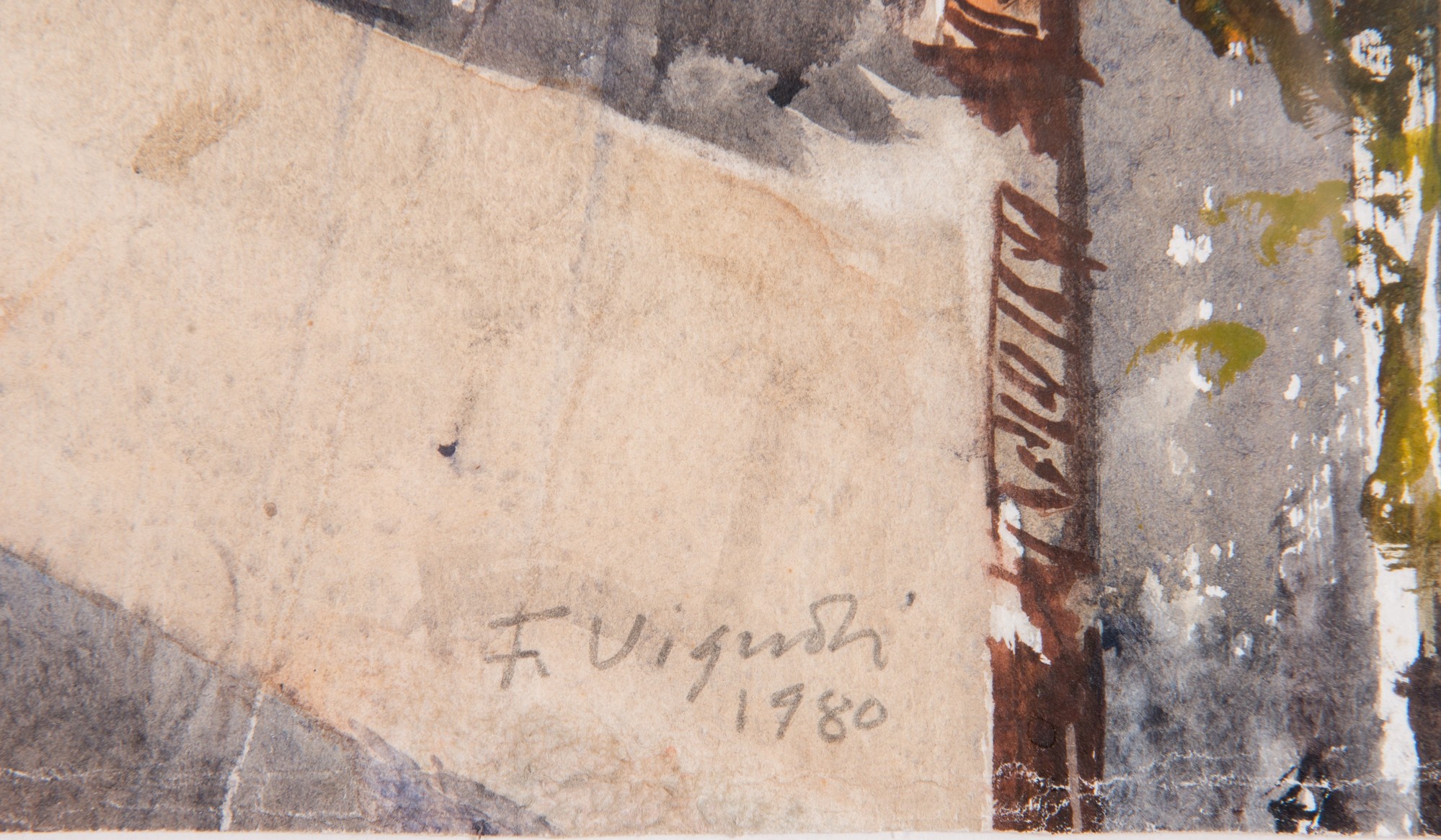 FARPI VIGNOLI (Bologna 1907 - 1997). “Scorcio di Bologna”, 1980. Acquerello su carta. Cm 44x33. Opera firmata e datata in basso al centro “F. Vignoli 1980”.
