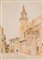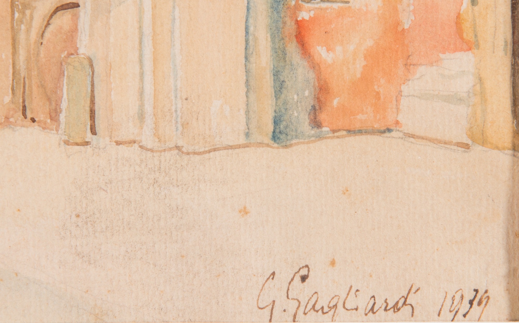 GIUSEPPE GAGLIARDI (Bologna 1902 - 2005). “Scorcio”, 1939. Acquerello su carta. Cm 31,5x23. Opera firmata e datata in basso a destra “G. Gagliardi 1939”.