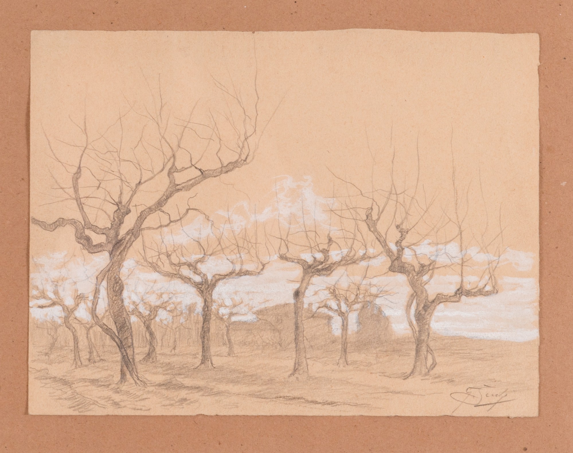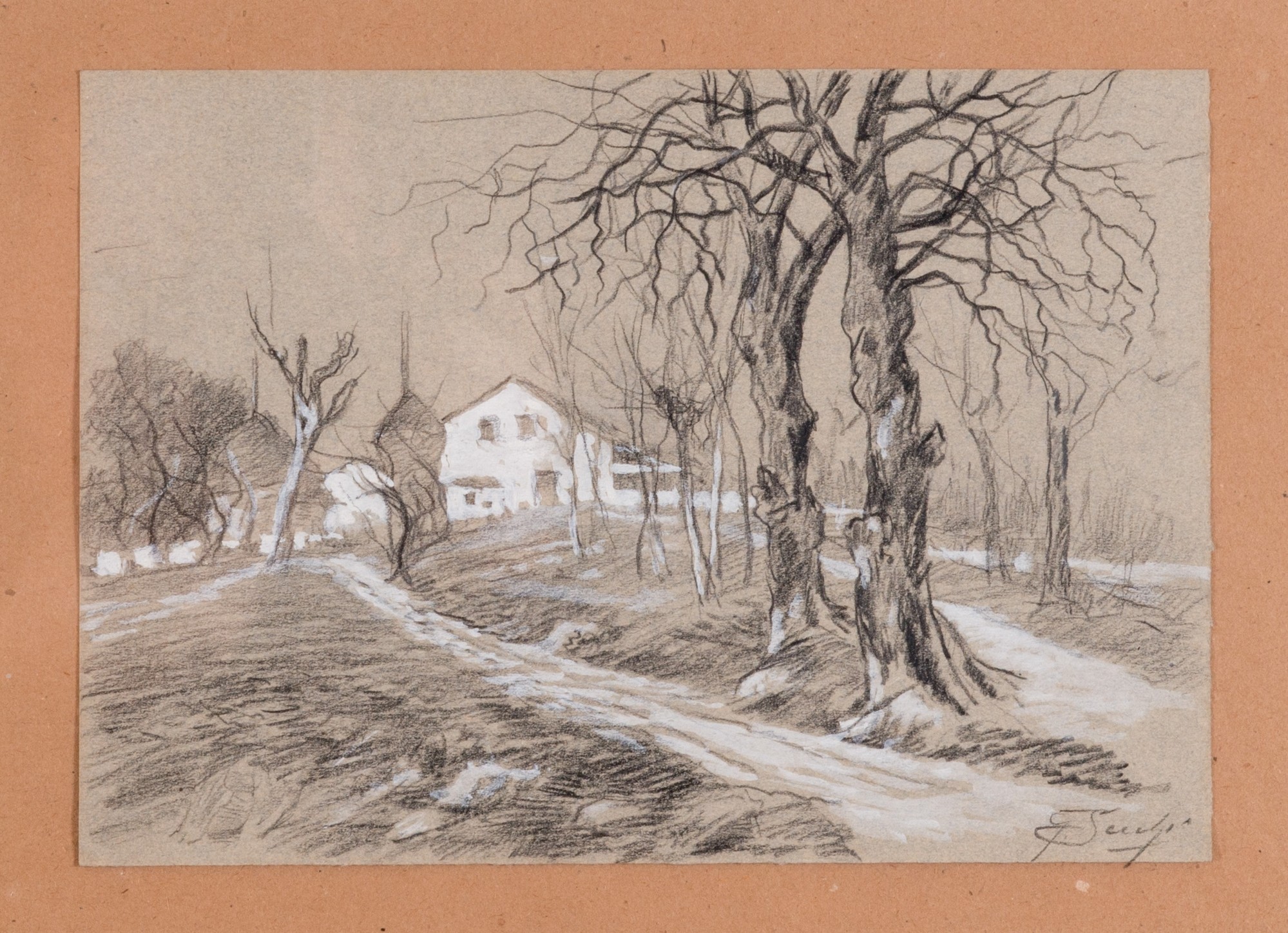 GIOVANNI SECCHI (Bologna 1876 - 1950). Coppia di tecniche miste su carta: “Bosco”, Cm 17x24. Opera firmata in basso a destra “G.Secchi”; “Paesaggio”, Cm 18,5x24,5. Opera firmata in basso a destra “G.Secchi”.