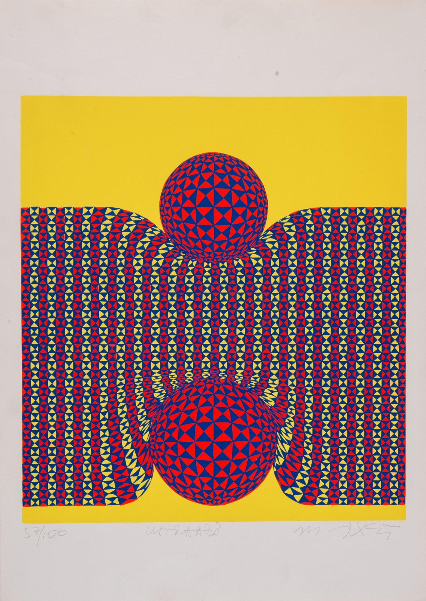 ARTISTA ANONIMO del XX sec. Coppia di litografie a colori su carta: “Blue submarine”, Cm 69,1x49,8. Opera firmata in basso a destra. Reca numero di tiratura in basso a sinistra 109/160; “Optical”, Cm 70x50. Opera firmata in basso a destra e siglata in basso al centro. Reca numero di tiratura in basso a sinistra 57/100.