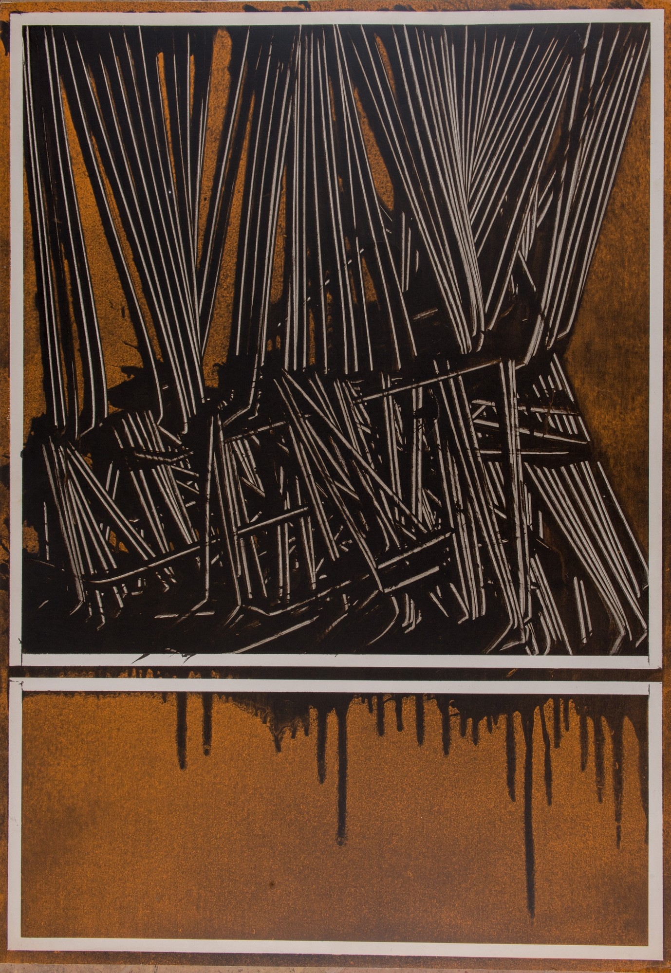 EMILIO SCANAVINO (Genova 1922 - Milano 1986) “Senza titolo”. Lito-serigrafia a colori su carta. Cm 100x69,8. Opera firmata al retro “Scanavino”. Reca al retro timbro riportante “Quest’opera di Emilio Scanavino è stata tirata con tecnica lito-serigrafica i 100 esemplari numerati, firmati dall’artista. Esemplare N. 56”.