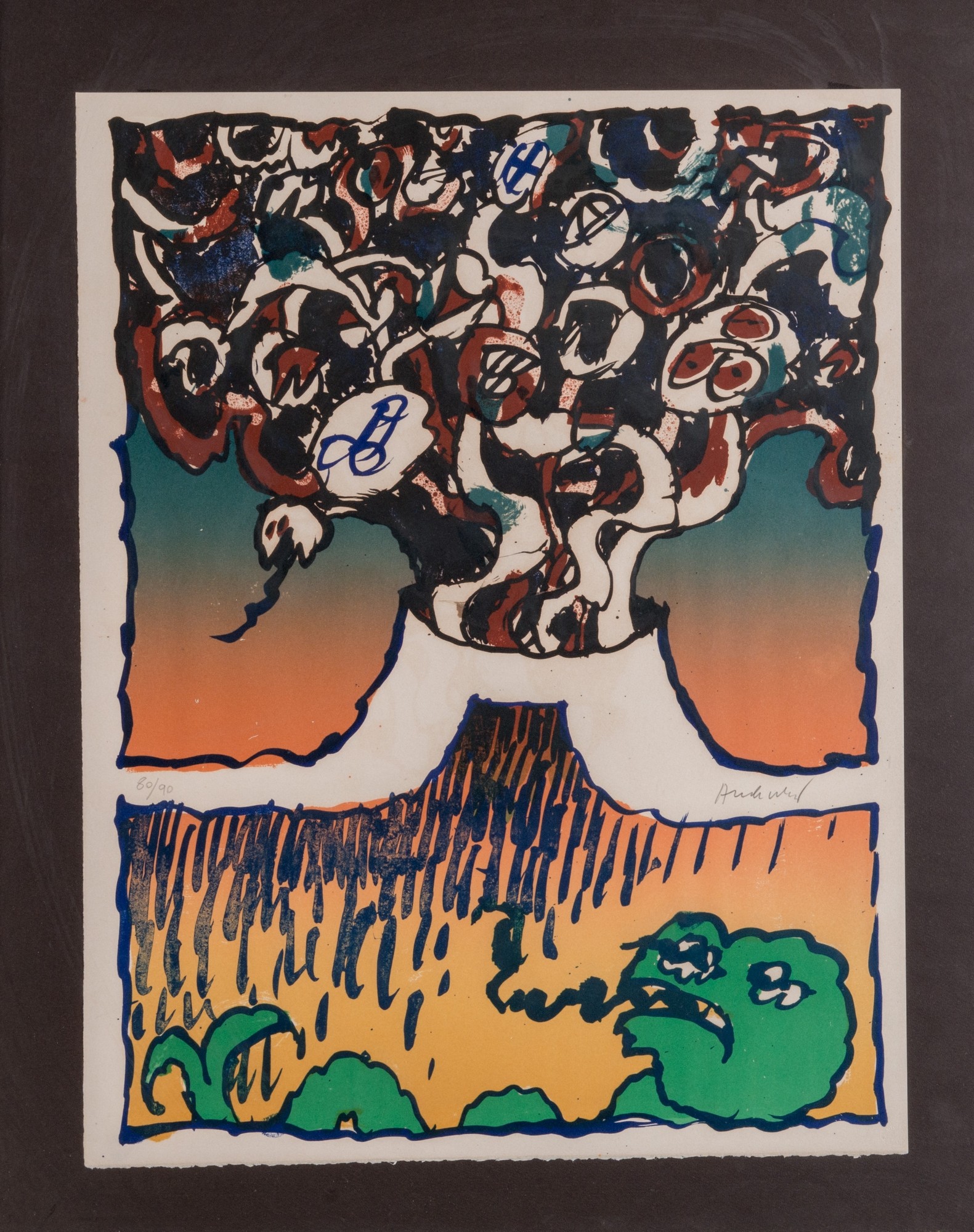 PIERRE ALECHINSKY ( 1927 Schaerbeek). “Senza titolo”. Litografia a colori su carta. Cm 56x43. Opera firmata a destra “ALECHINSKY ". Numeri di tiratura a sinistra 80/90.