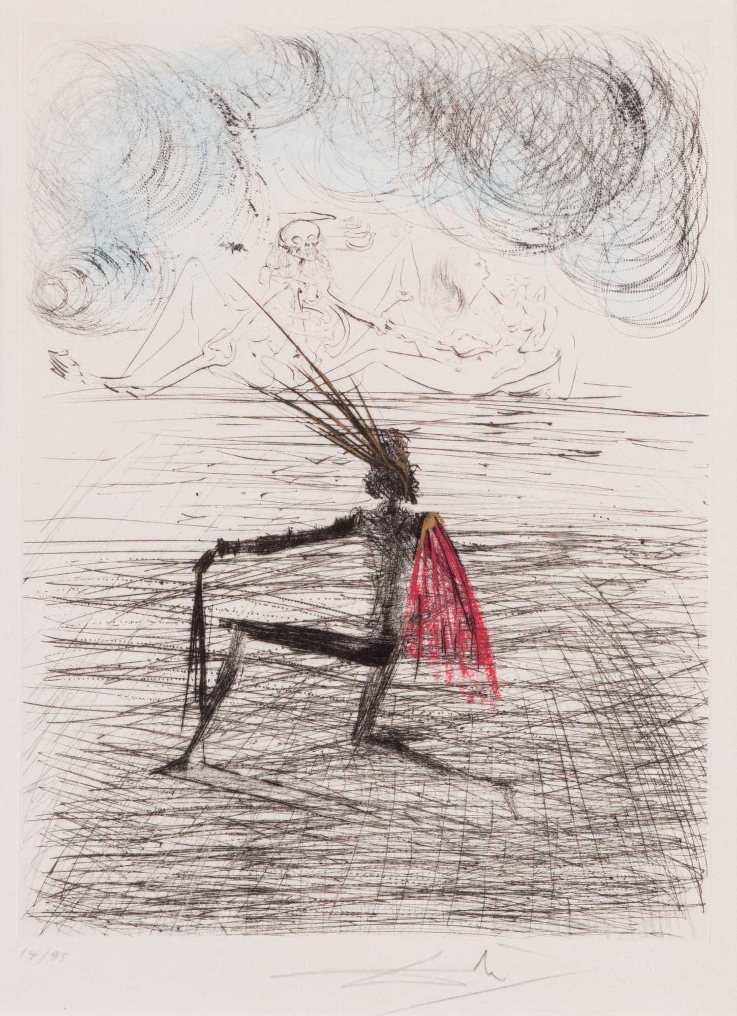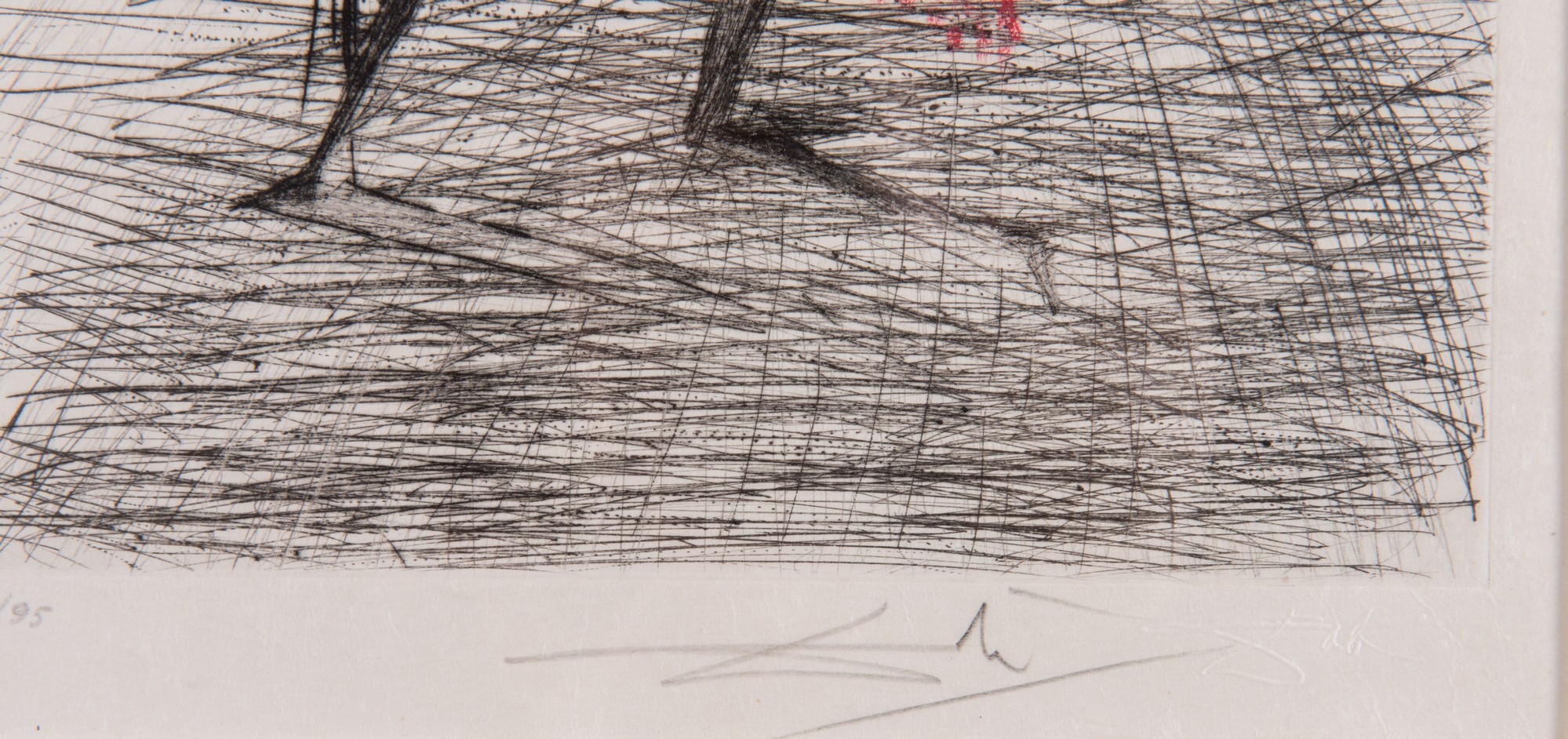 SALVADOR DALI’ (Figueres 1904 – 1989). “Senza titolo”. Litografia a colori su carta. Lastra: Cm 31,5x23,5. Opera firmata e timbrata a secco in basso a destra “Dalì”. Reca numero di tiratura in basso a sinistra 14/95. Al retro reca timbro di Galleria d’arte Il Collezionista - Via S. Stefano 11 Bologna.
