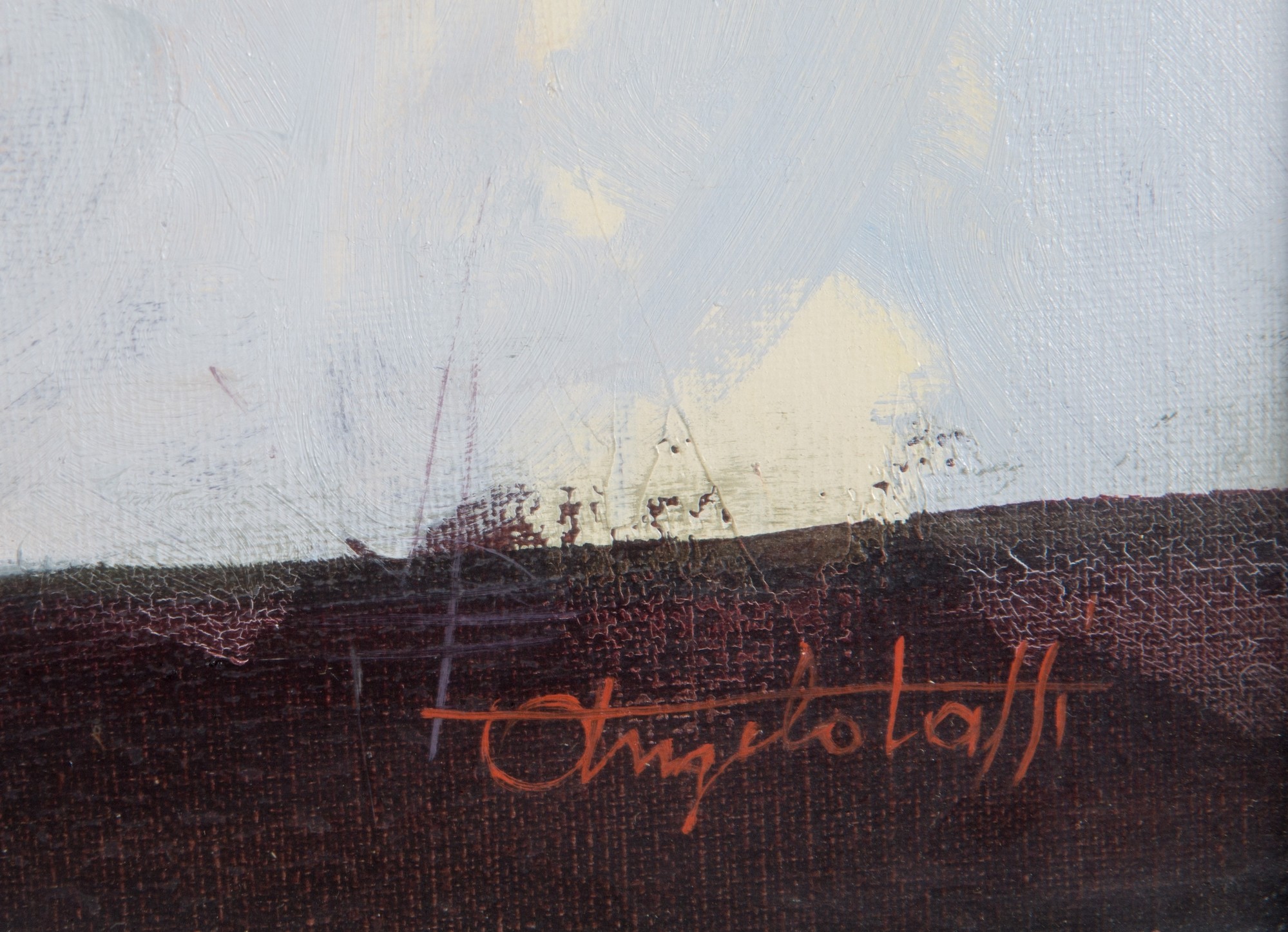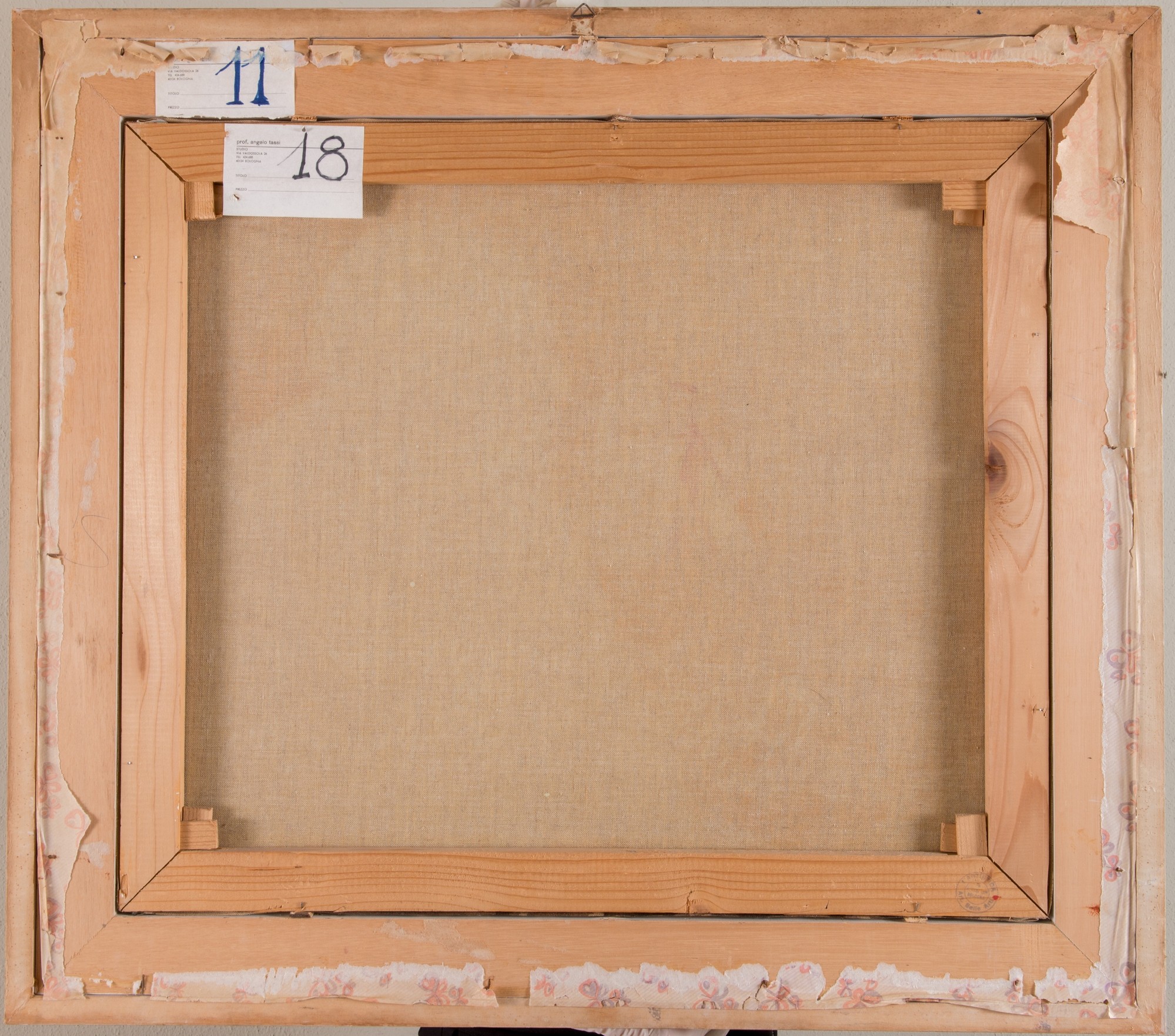 ANGELO TASSI (Bologna 1937). “Senza Titolo”. Olio su tela. Cm 60x70. Opera firmata in basso a sinistra “Angelo Tassi”. Reca al retro etichette “Prof. Angelo Tassi studio Via Valdossola 26 Bologna”. Al retro reca timbro L’Artistica Belle Arti.