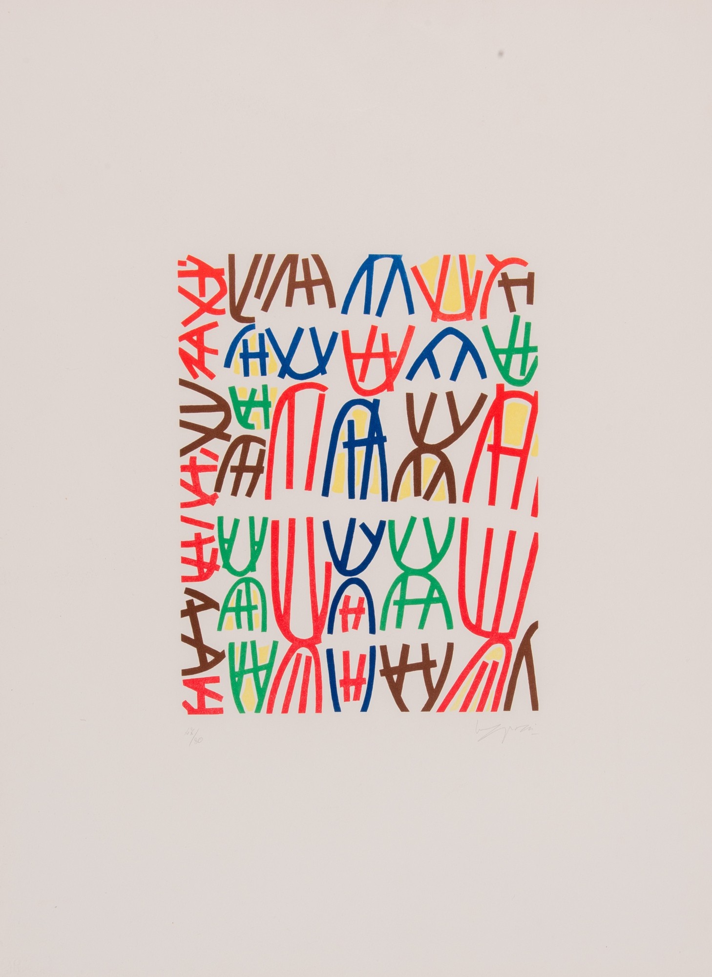 GIUSEPPE CAPOGROSSI (Roma, 7 marzo 1900 – Roma, 9 ottobre 1972). “Senza titolo”. Litografia a colori su carta. Foglio: Cm 64x48. Opera firmata in basso a destra “Capogrossi”. Numero di tiratura in basso a sinistra 47/80.