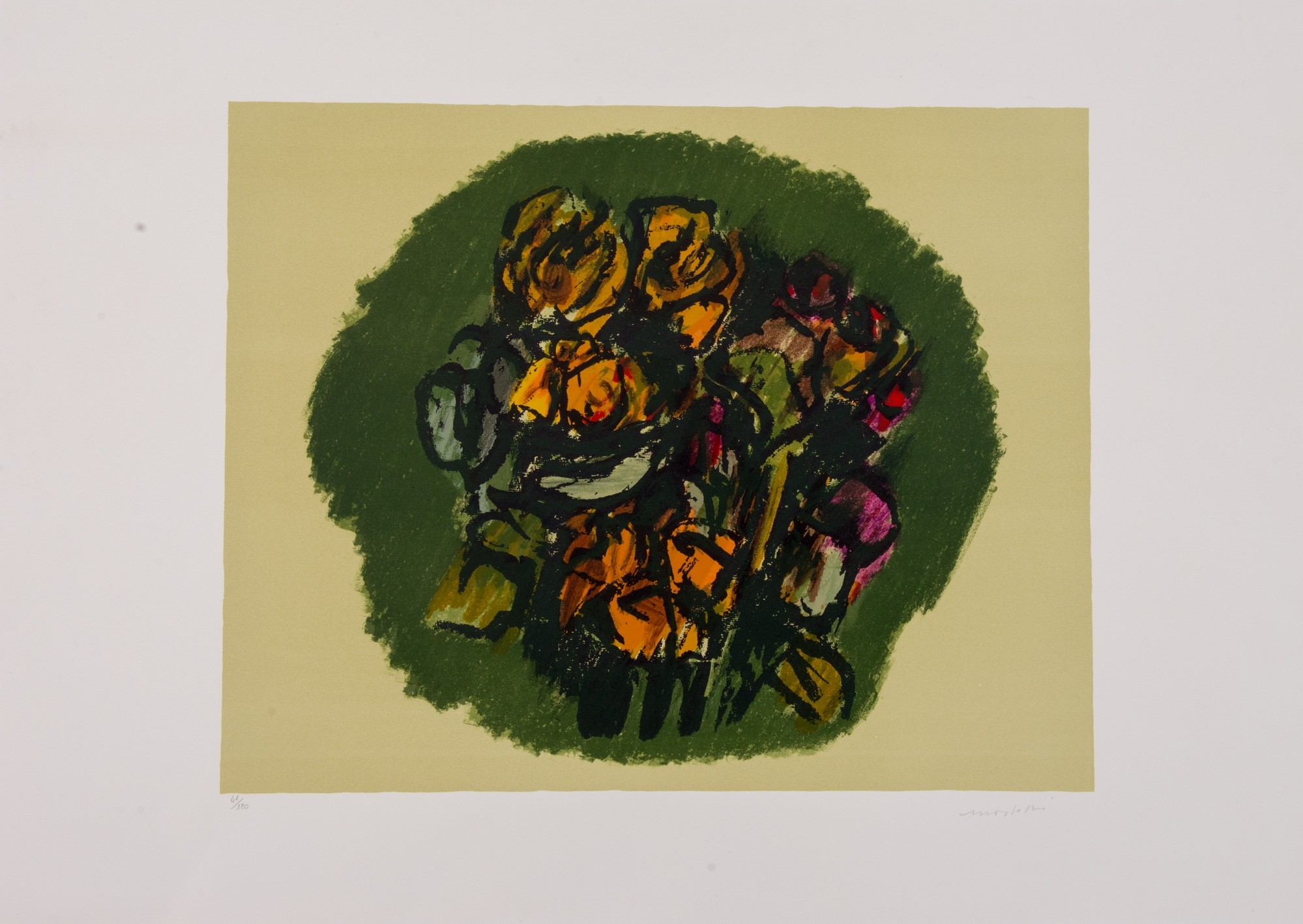 ENNIO MORLOTTI (Lecco 1910 - Milano 1992). “Fiori”. Litografia a colori su carta. Foglio: Cm 50,5x70; Lastra Cm 36x45. Opera firmata in basso a destra “Morlotti”. Reca numeri di tiratura in basso a sinistra 41/120.