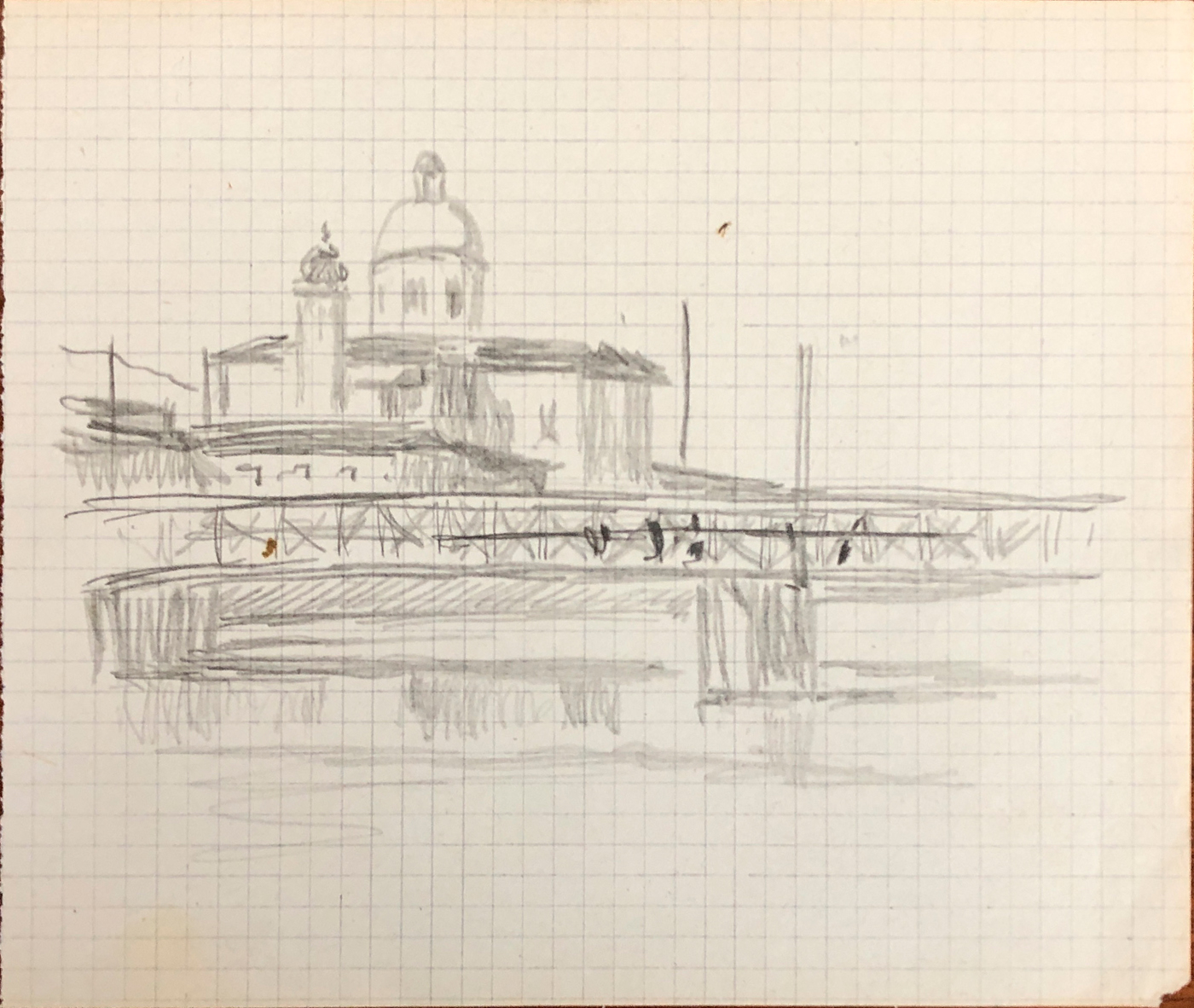 GALILEO CHINI (1873-1956) - Firenze: ponte di ferro sull'Arno, 1944