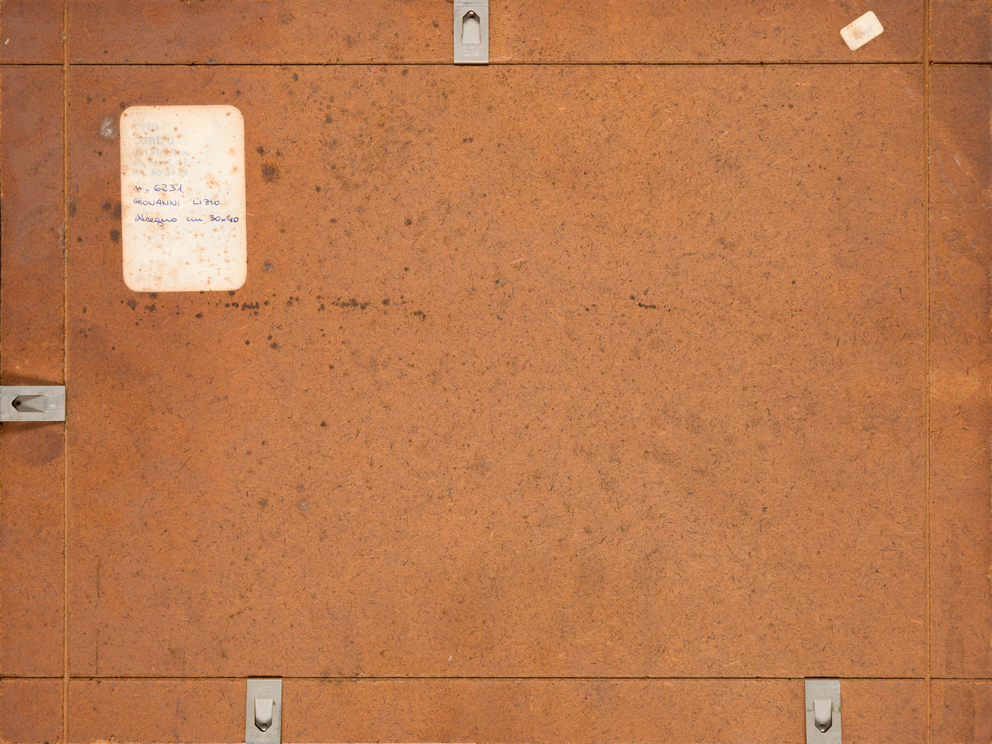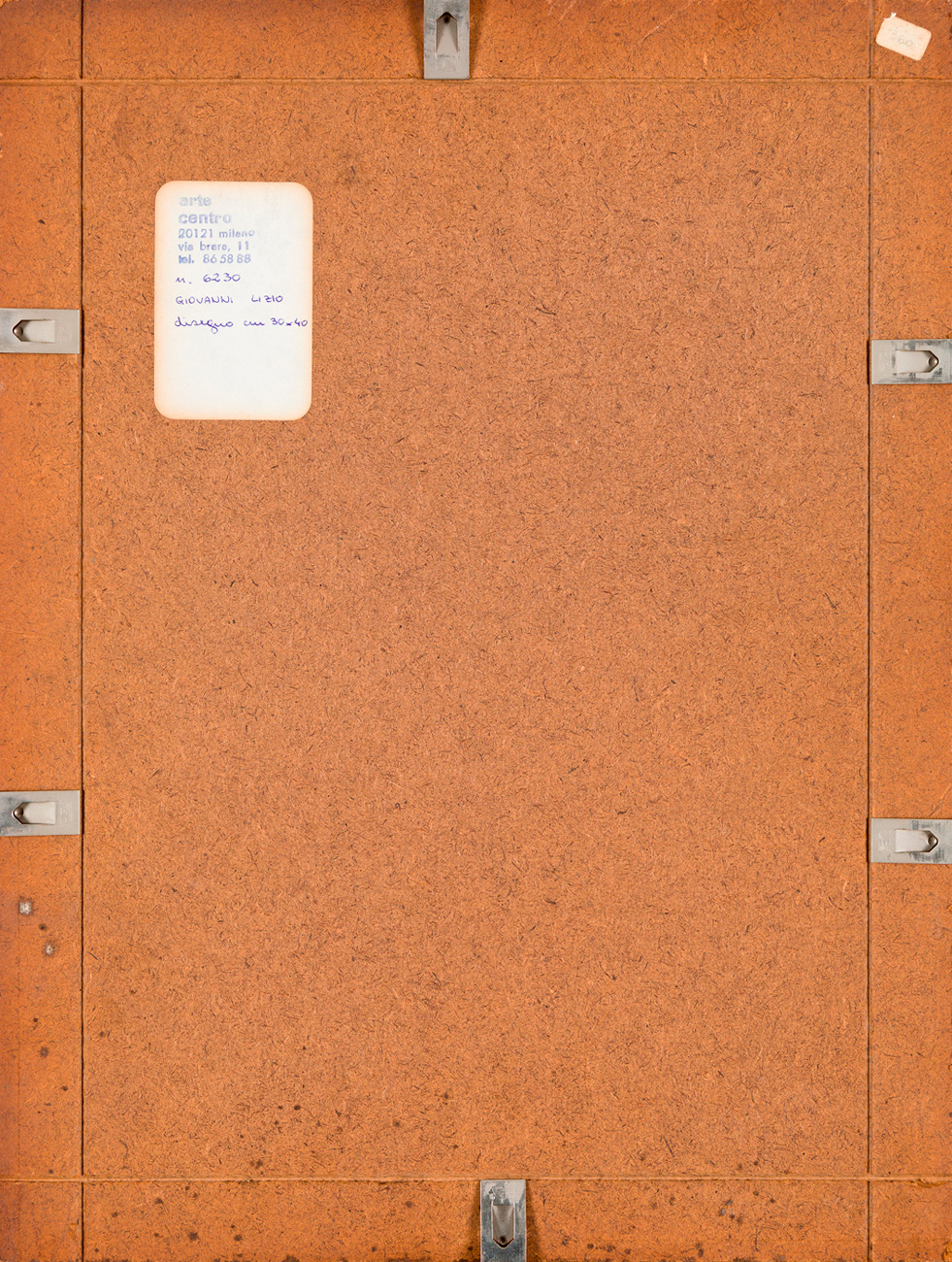 Etichetta della Galleria Arte Centro (MI) al retro della tavola protettiva