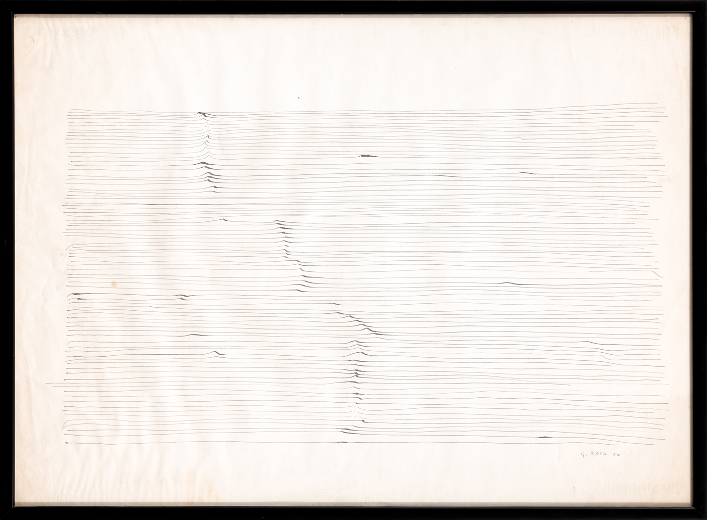 Etichetta e timbro della Galleria Arte Centro (MI) al retro del cartone protettivo