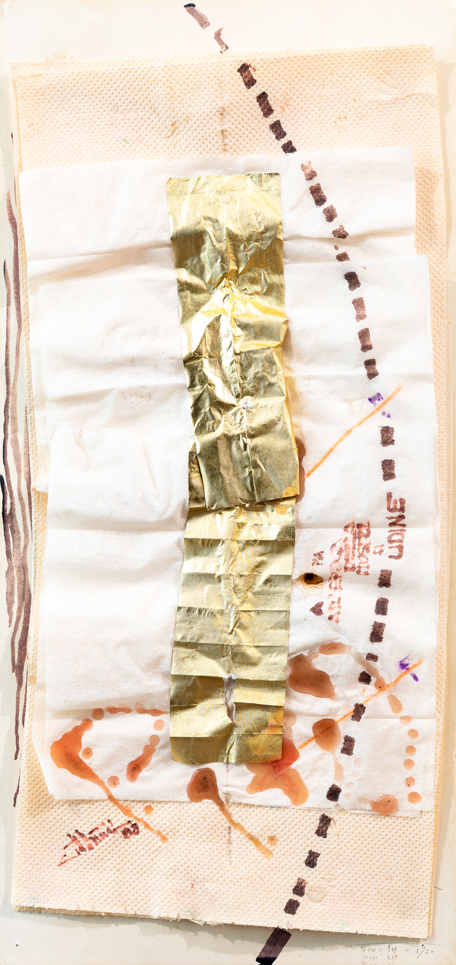 Tecnica mista, collage e applicazioni su cartoncino applicato su masonite