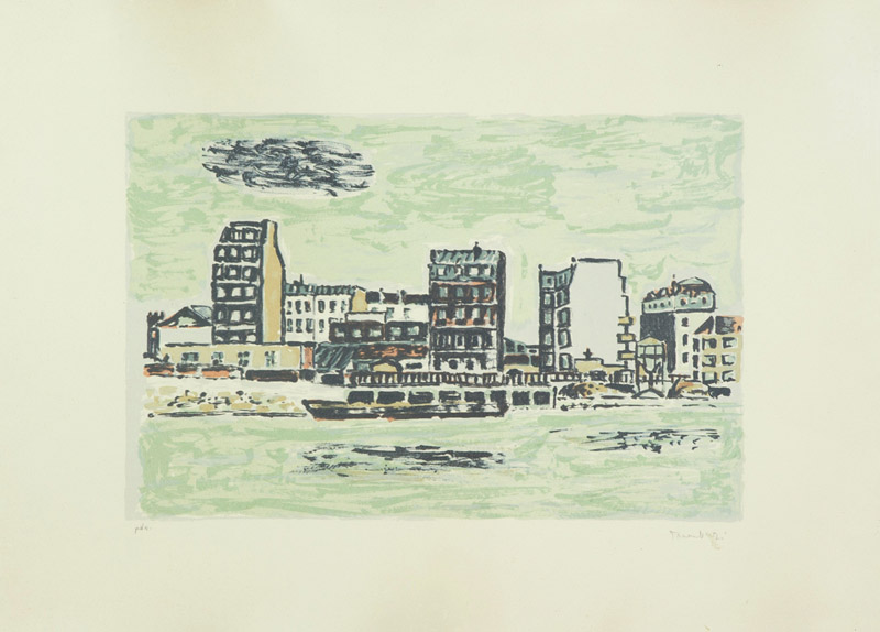 Orfeo Tamburi Paesaggio Litografia su carta, cm. 50x70, es. P.A. Firmato in basso a destra.
