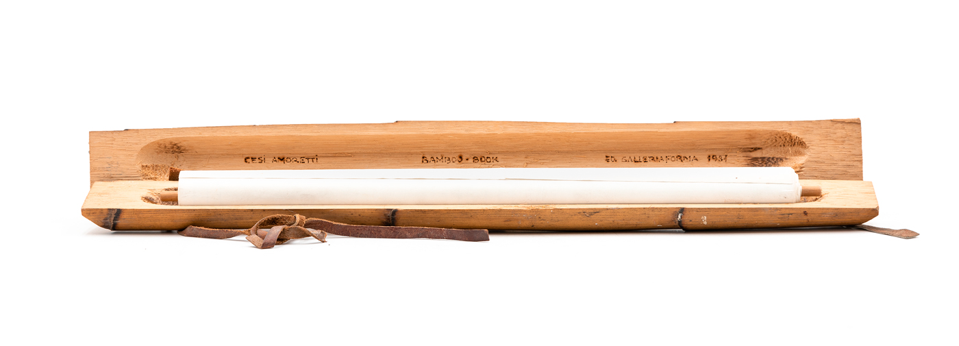 Scatola in legno sagomato contenente una riproduzione serigrafica su carta arrotolata