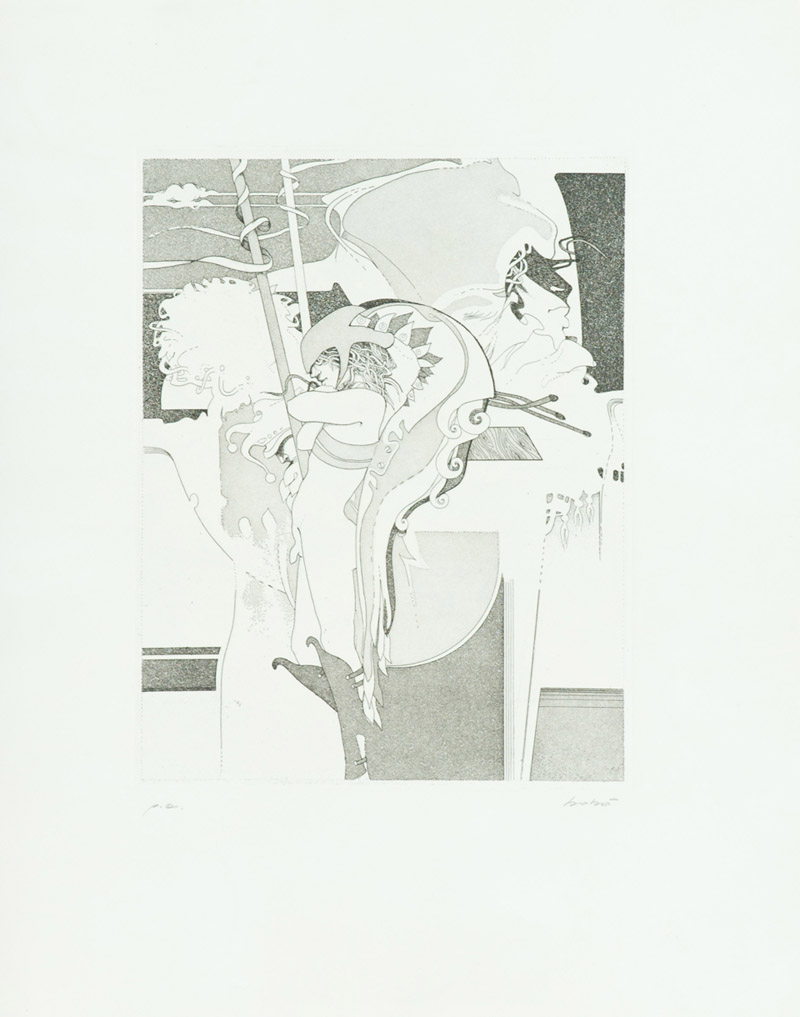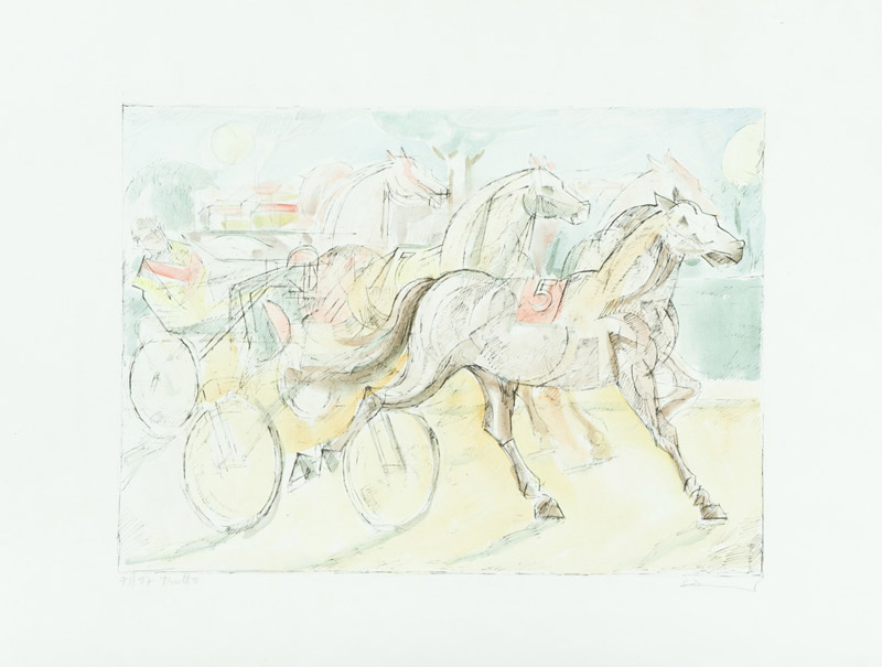 Schinasi Daniele, Babò Antonio Lotto unico di due Opere - "Daniel Schinasi", Trotto, 1982, Litografia su carta, cm. 49x68, es. 71/97, firma in basso a destra, titolo e tiratura in basso a sinistra, sul verso: firma, data, titolo, tiratura e timbro dell'Artista; - "Antonio Babò", Vento, Acquaforte di cm. 30x23, su carta di cm. 50x40, es. P.A., firmato in basso a destra, sul verso: etichetta dell'Artista con firma e descrizione.