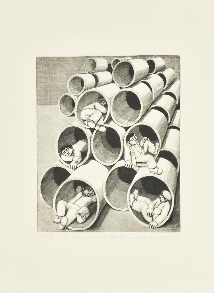 Alberico Morena I TUBI xilografia su carta velina, cm 34x25; es. V/XI firma, titolo e...