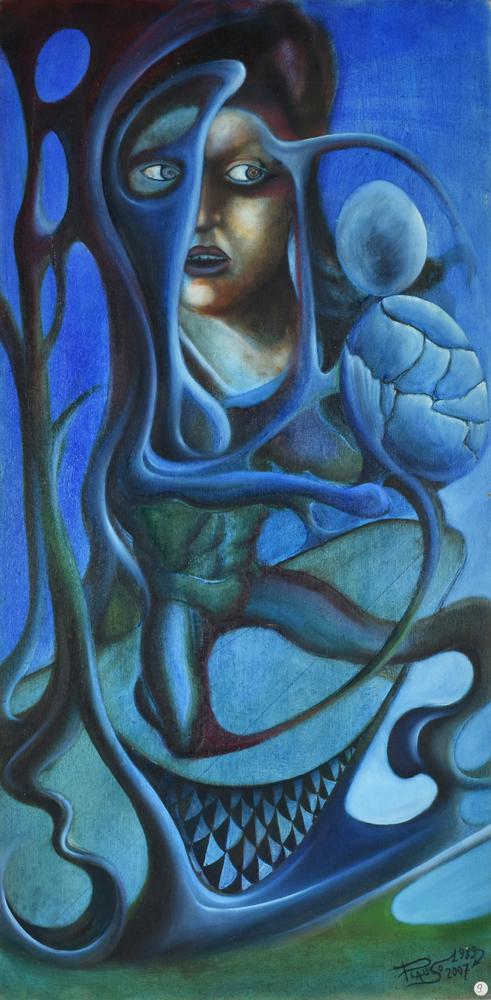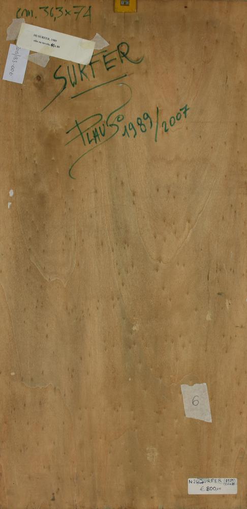 Lotto 29 | Plauso SURFER olio su tela, cm 74x36,3 sul fronte: firma e data sul retro:...