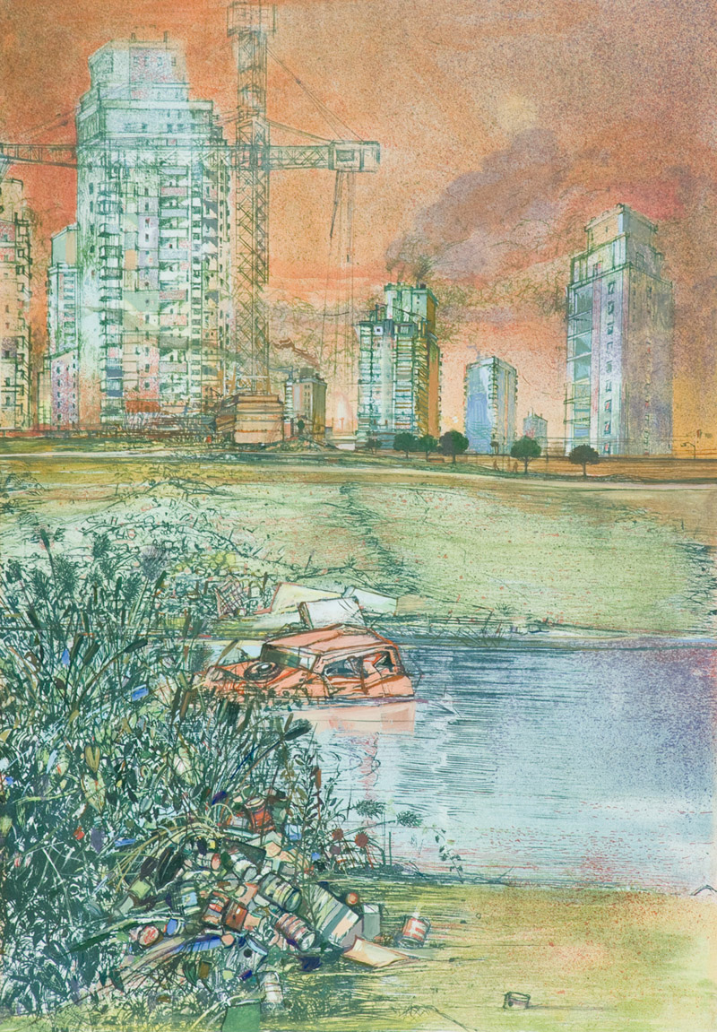 Pier Luigi Romani Periferia Litografia su carta, cm. 70x50, es. III/XX Firma in basso a destra, tiratura in basso a sinistra.