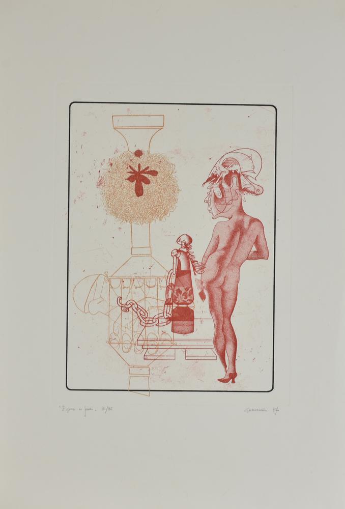 incisione su carta, foglio cm 69x48, battuta cm 42,5x31,5; es. 31/35