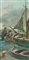 Claudio Da Firenze Barche ormeggiate Olio su faesite, cm. 60x30 Firmato in basso a sinistra.
