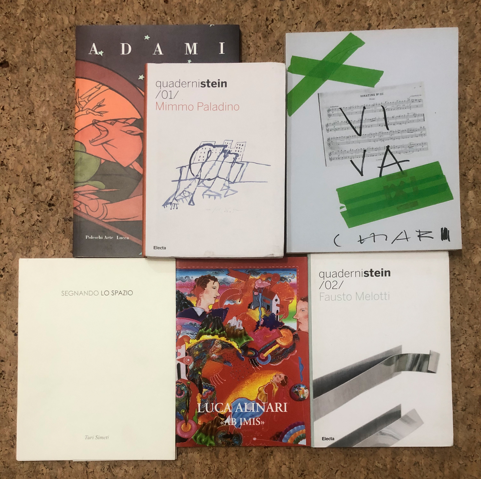 ARTISTI ITALIANI DEL DOPOGUERRA (ADAMI, CHIARI, SIMETI, ALINARI, MELOTTI, PALADINO) - Lotto unico di 6 cataloghi