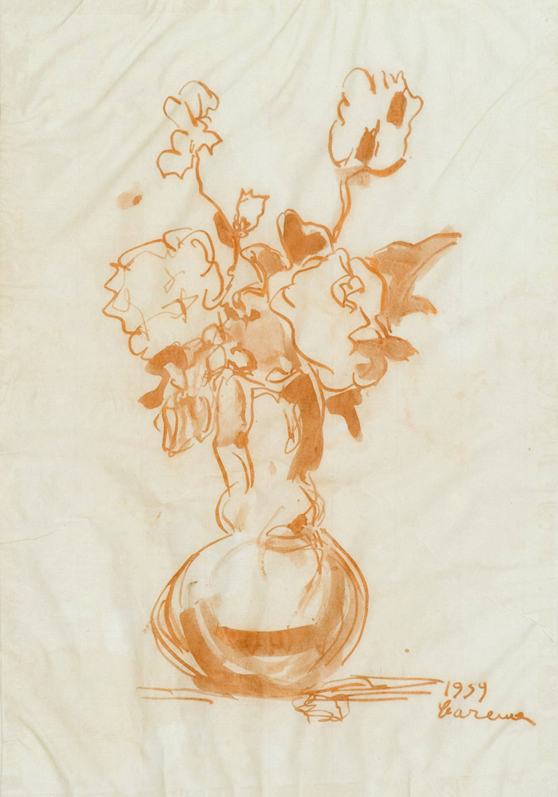 Felice Carena Vaso di fiori, 1959 China acquerellata su carta, cm. 30x21 La carta presenta piegature. Firma e data in basso a destra.