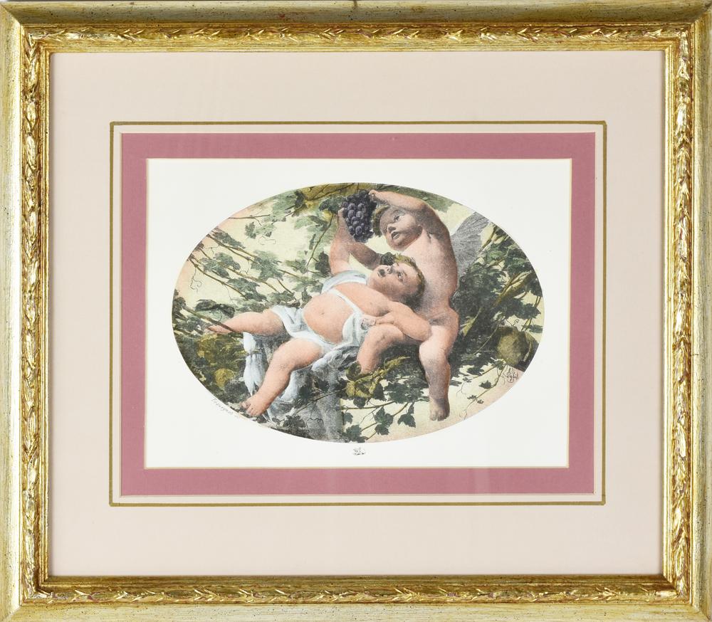 Lotto 28 | STAMPA A COLORI SU CARTA raffigurante coppia di putti alati festanti, da...