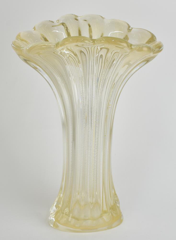 VASO IN VETRO DI MURANO con inclusioni in foglia d'oro, Formia, Murano firma...