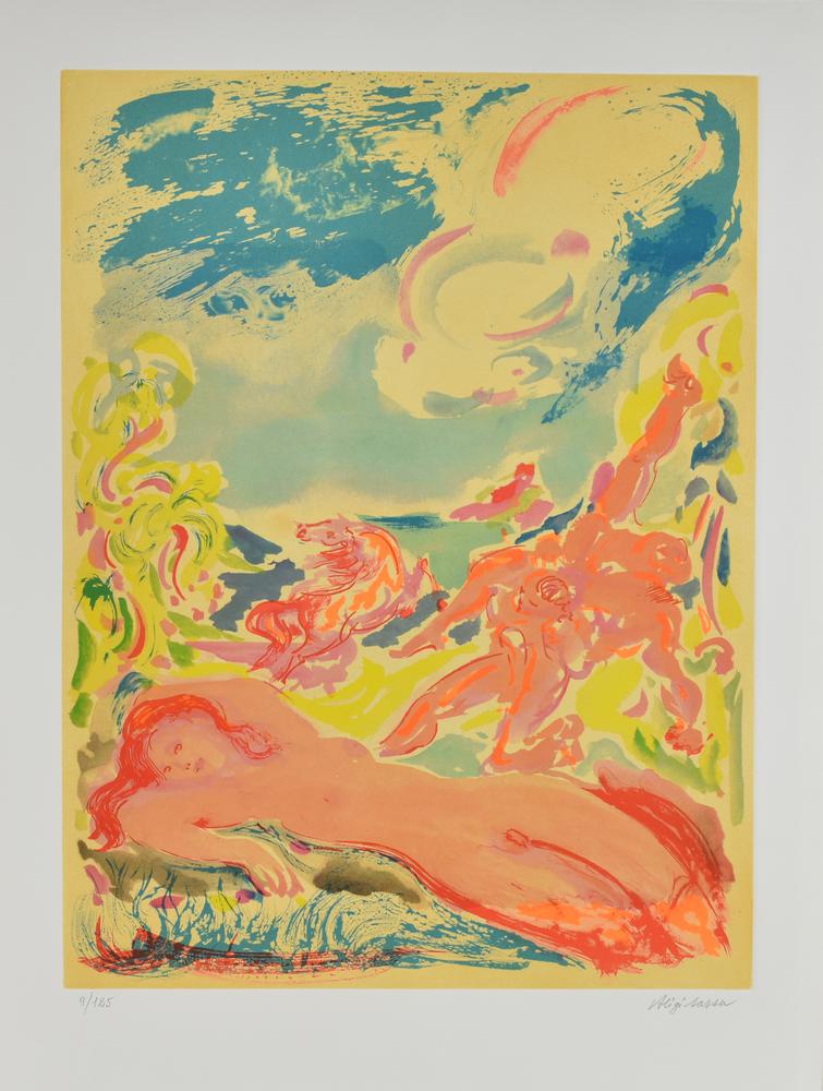 Aligi Sassu SENZA TITOLO incisione su carta, foglio cm 76x56, battuta cm...