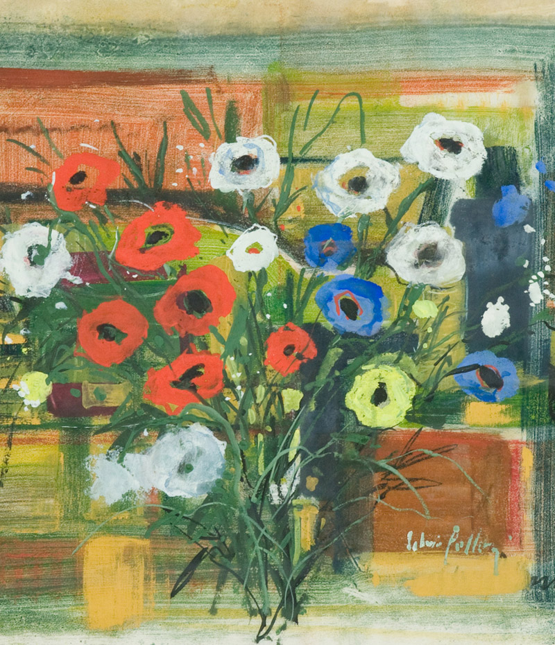 Silvio Polloni Fiori Tecnica mista su carta, cm. 40x36 Firmato in basso a destra.