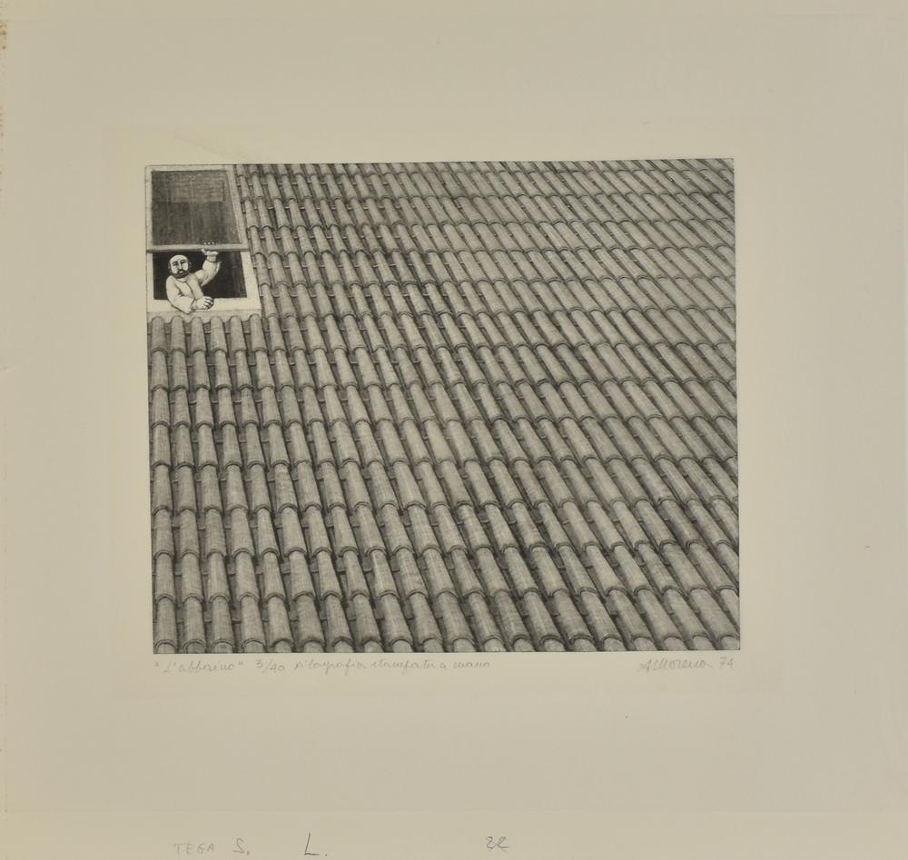 Alberico Morena L'ABBAINO xilografia su carta velina, cm 40x47; es. 3/40...