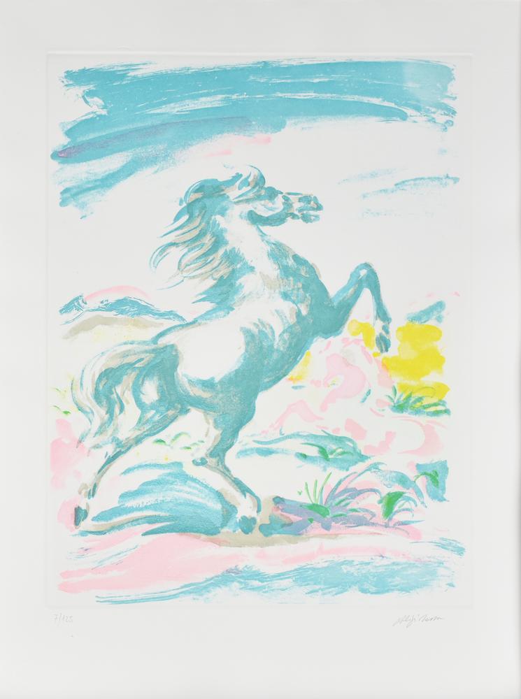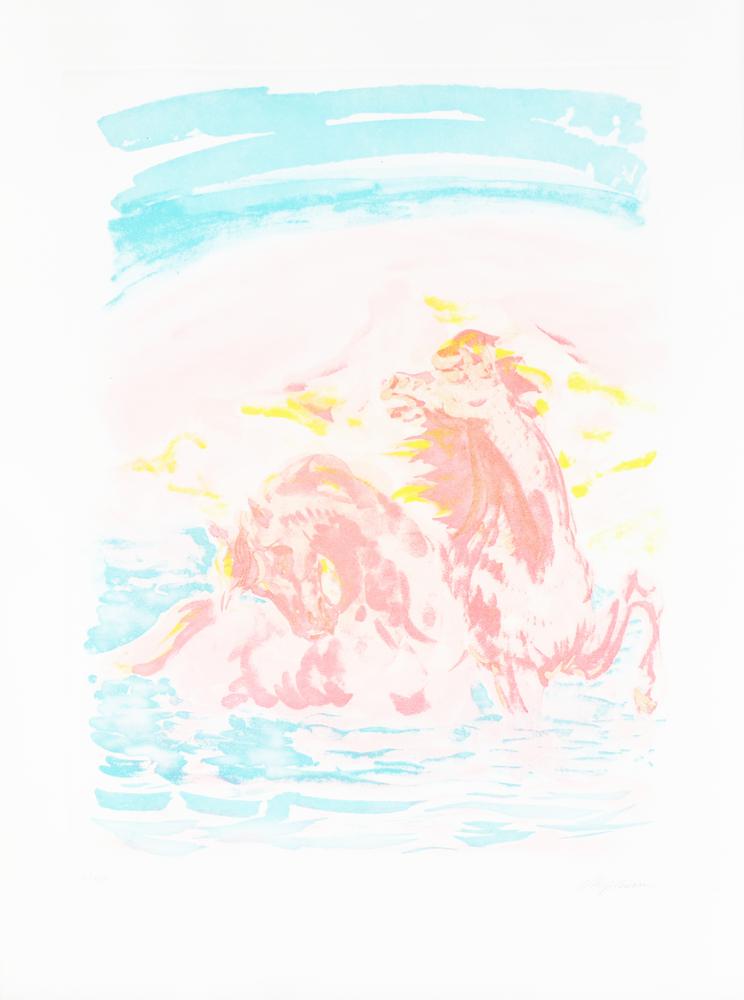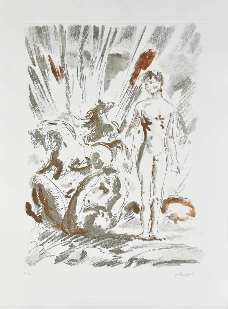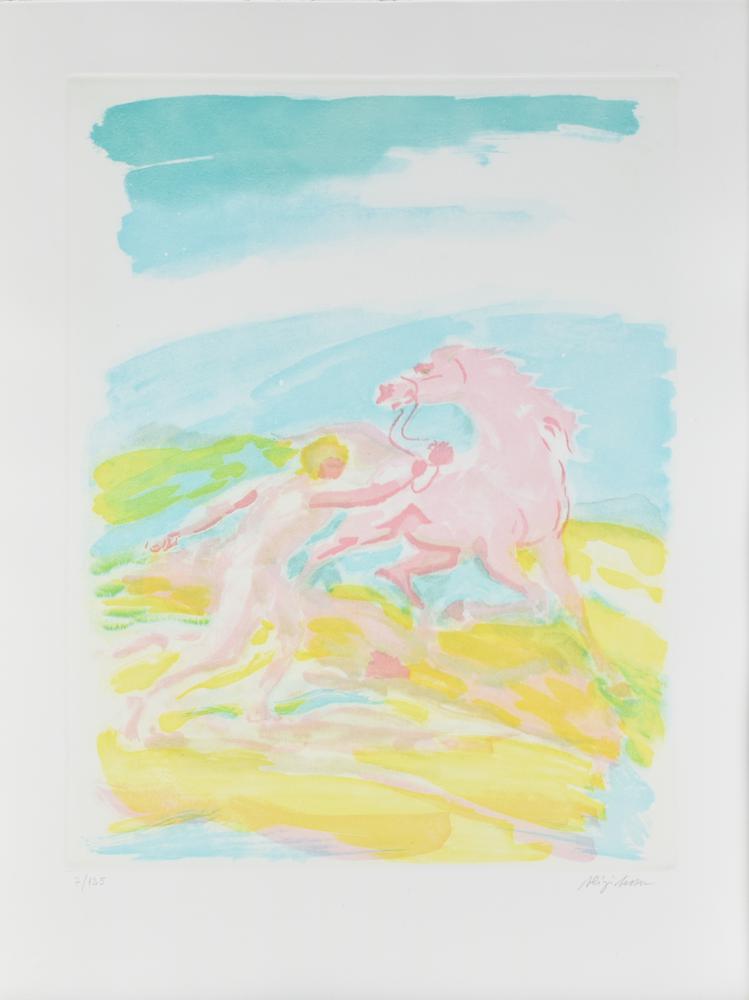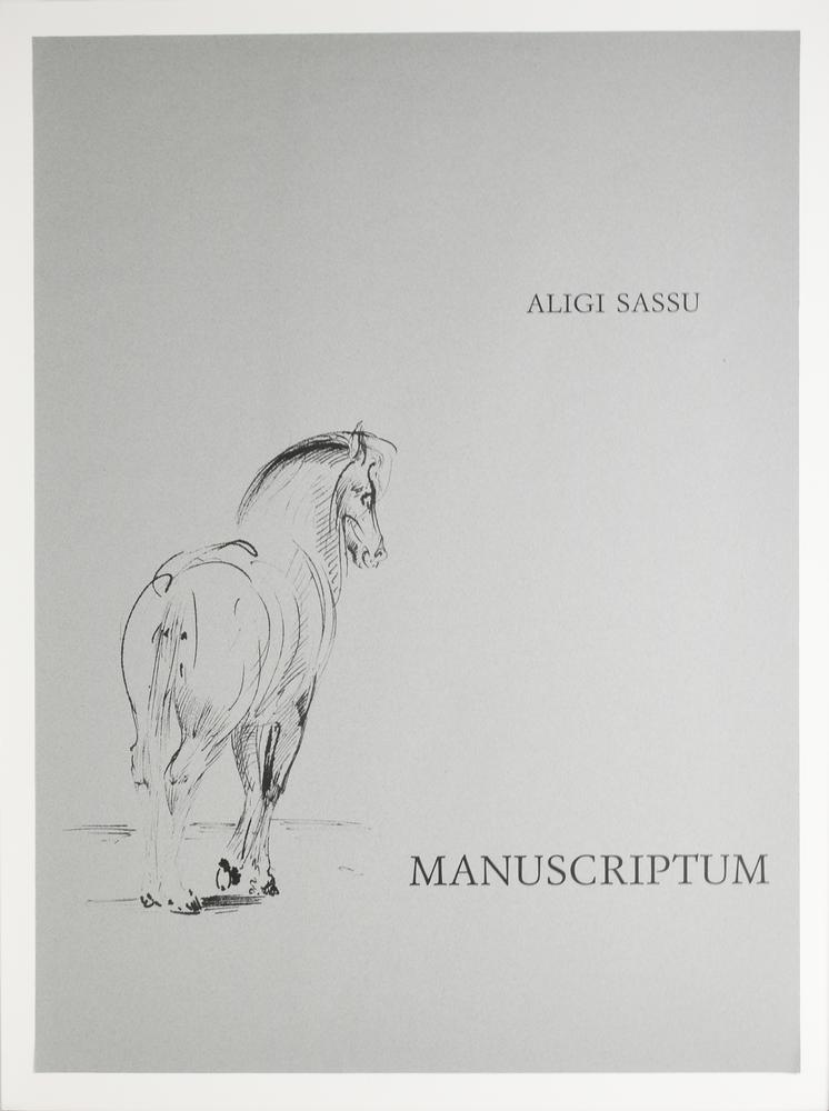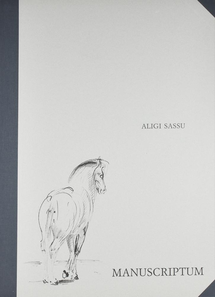 Aligi Sassu MANUSCRIPTUM cartella con cinque acqueforti-acquatinte, battuta...