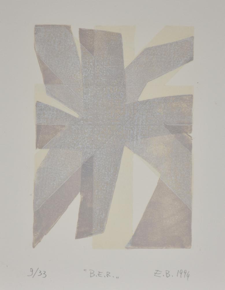 Emiliano Bonfanti B.E.R. xilografia su cartoncino, cm 28x22 sigla, titolo e...