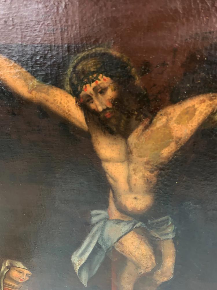 Anonimo del XVIII secolo CROCIFISSIONE olio su tela, cm 69x57 L'opera...