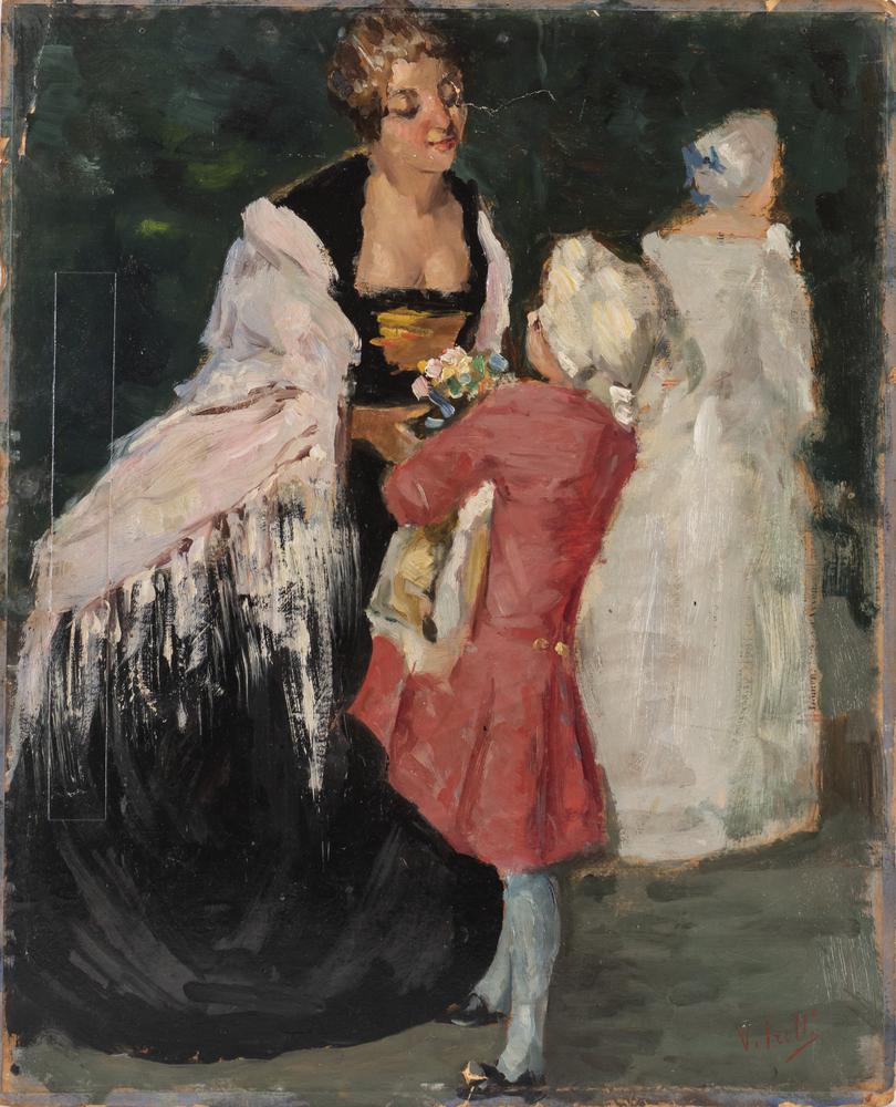 Lotto 31 | Vincenzo Irolli IL DONO olio su carta applicata a cartone, cm 43x35 firma