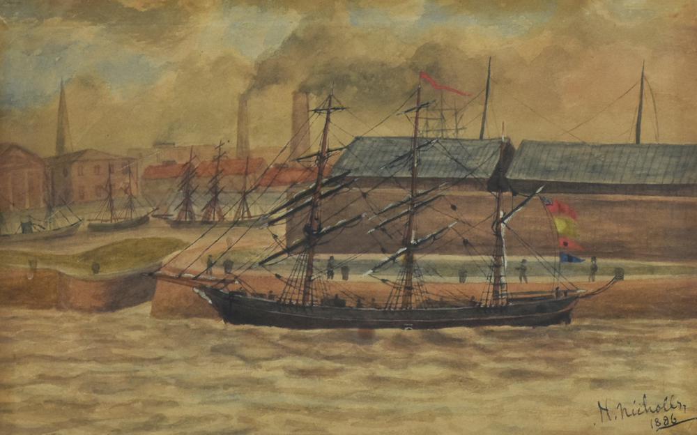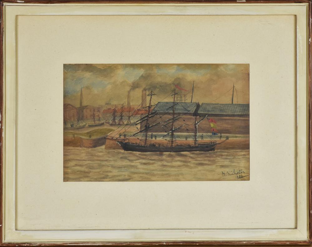 Ignoto VELIERO ATTRACCATO guache e tempera su carta, cm 15x24 firma e data...