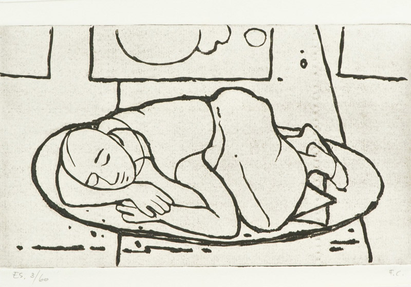 Felice Casorati Figura accovacciata, 1963 Acquaforte di cm. 20x35, su carta di cm. 34,5x48,5, es. 3/60 Sigla e timbro a secco dell'Artista in basso a destra, titolo in basso a sinistra.