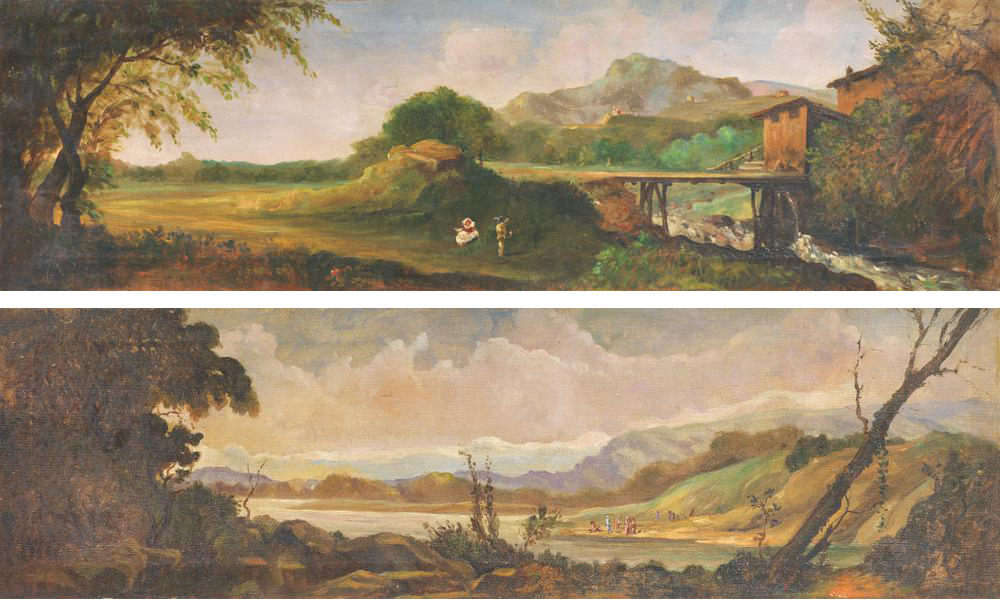 Scuola veneta della fine del XIX secolo COPPIA DI PAESAGGI olio su tela, cm...