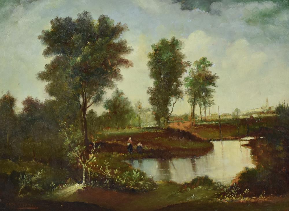 Scuola toscana del XIX secolo VEDUTA DELL'ARNO olio su tela, cm 17x34,5...