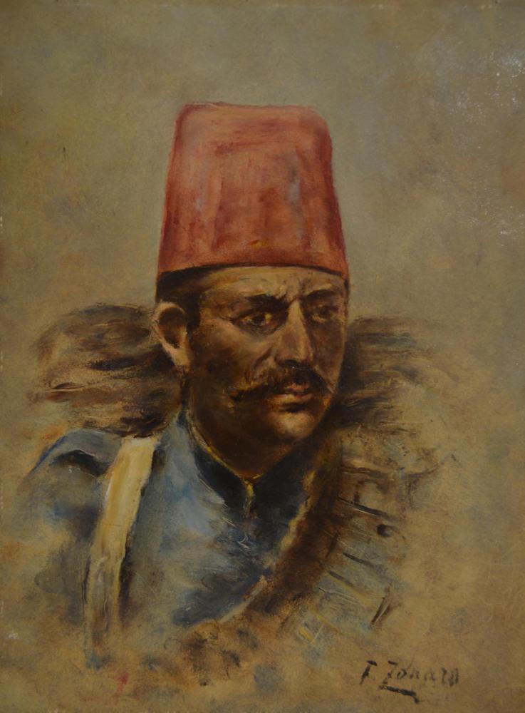 Fausto Zonaro MILITARE TURCO olio su cartone, cm 40x30 firma