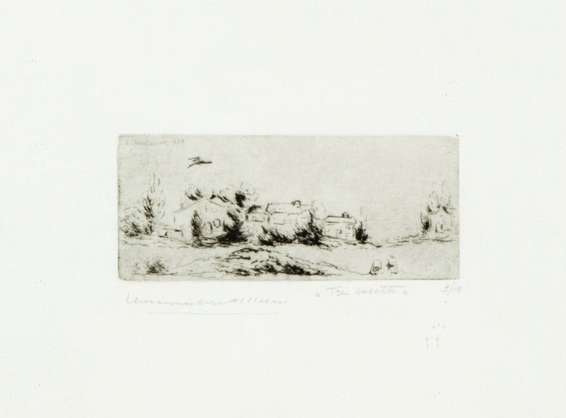 Leonardo Castellani Tre casette Acquaforte di cm. 6,5x15, su carta di cm. 20x26, es. 9/10 Firma in basso a sinistra, titolo in basso al centro, tiratura in basso a destra.