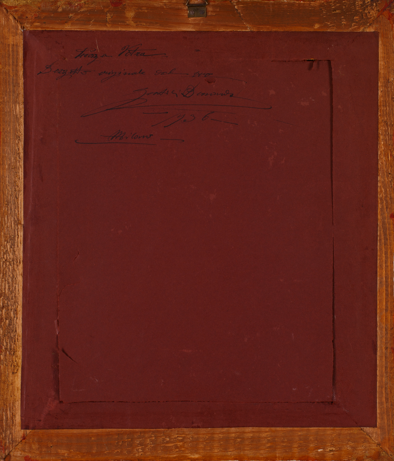 Firma, titolo, datazione e località (Milano) al retro del cartone protettivo