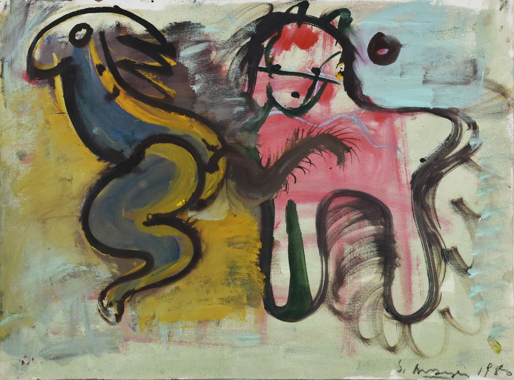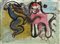 Ignoto FIGURA CON CAVALLINO tecnica mista su carta, cm 50x70 firma e data...
