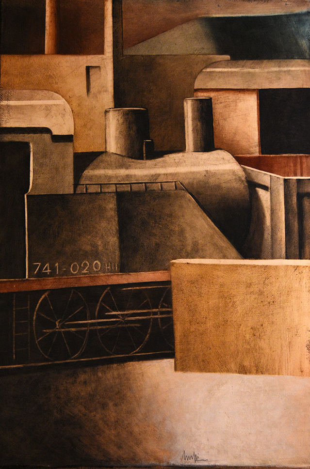 Marcello Scuffi Olio su tela 40x60 Vecchi treni al deposito 2010 Archivio Scuffi n. 14/14